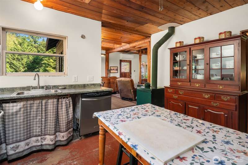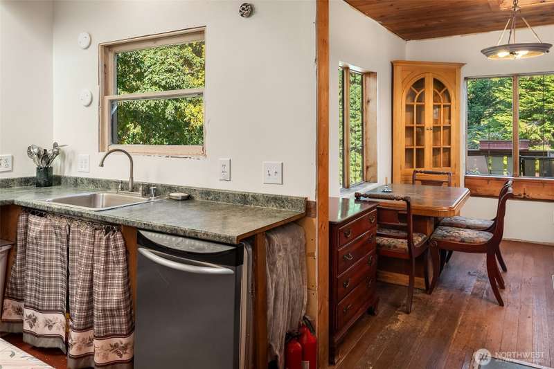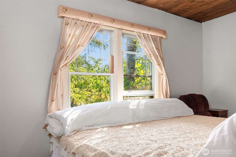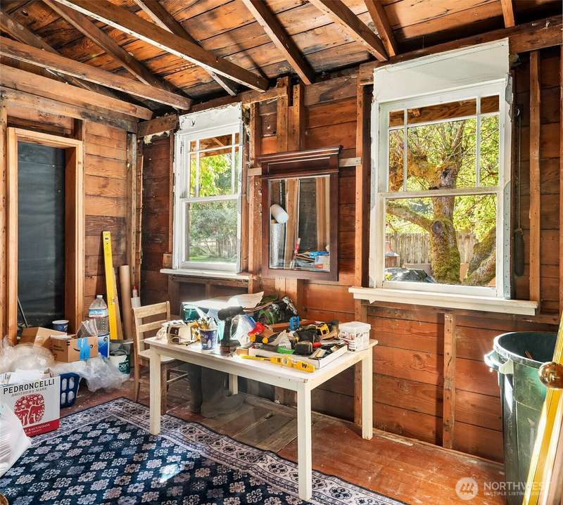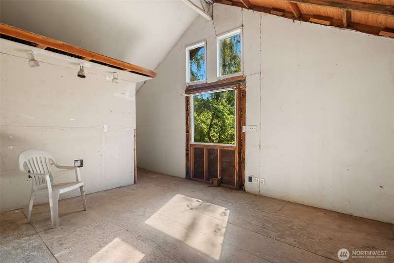 Peacefully located on the NW side, yet just minutes from town, this 1919 farmhouse is full of rustic charm and potential. The main floor includes one bedroom and an unfinished bonus room, with vaulted wood ceilings, exposed posts and beams, skylights, stain glass windows, fir and plywood flooring, a mini-split system, and a cozy wood stove. A spacious deck opens off the living room. Upstairs features a finished room and a mezzanine balcony. Let your renovation ideas flourish and transform this hidden gem into a magical destination. The sun-drenched, pastoral shy acre offers mature apple, plum and pear trees, and a majestic "mother" birch. The one and one half story shop with high ceilings provides space for hobbies and creative projects.