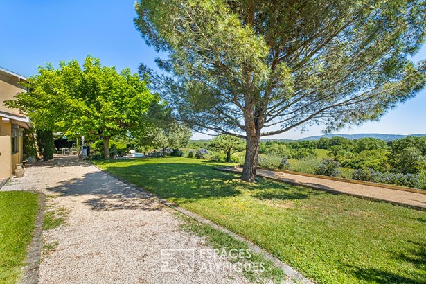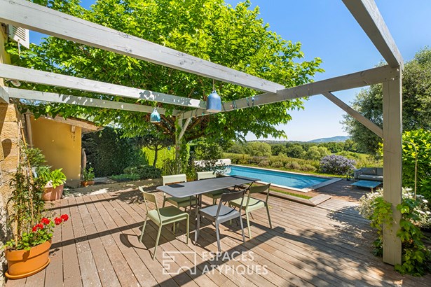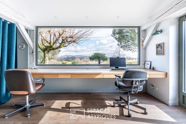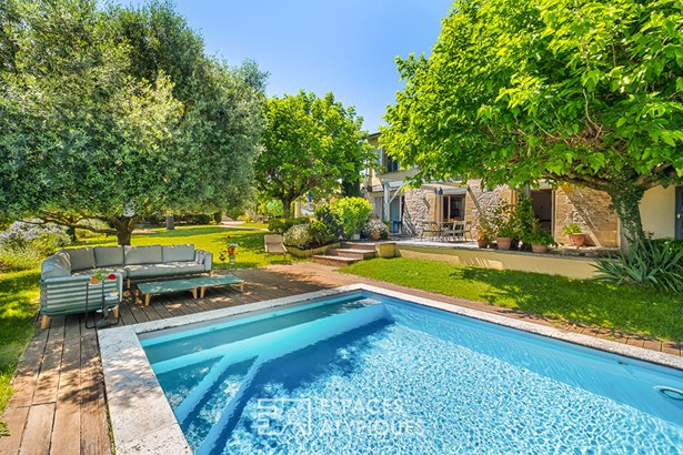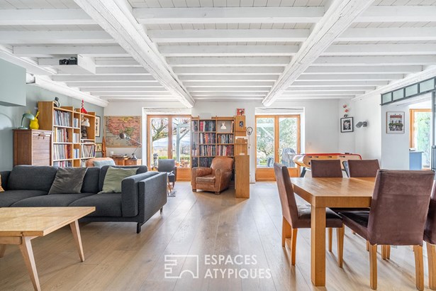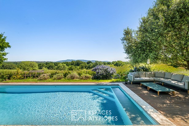 Nestled in the heart of a green setting of nearly 2000 sqm, this old farmhouse, completely renovated and extended, opens onto an enchanting landscape, offering a breathtaking view of the valley as far as the Monts d'Or. Here, everything is light and serenity, in absolute calm while remaining close to the center of Marcy l'etoile and amenities as well as the Parc Lacroix Laval and the Charbonnieres-les-Bains train station which serves Lyon. Upon entering, a generous hall reveals on the one hand, an office space bathed in light, where a large opening frames the surrounding nature like a living painting. A first master suite completes this part, providing comfort and privacy. On the other side of the hall, is the living space with a semi-open kitchen, fully equipped, extended by a discreet storeroom. The living room and dining room, with harmonious volumes, open widely onto the outside, inviting contemplation and conviviality. A staircase leads to the upper floor, where light remains omnipresent. Four bedrooms, including a second master suite, make up this sleeping area, accompanied by a bathroom. Outside, the wooded grounds display their assets: a swimming pool for sunny days, a petanque court for shared moments and an independent workshop of more than 30m to give free rein to your desires. A house where the charm of the old dialogues with a careful renovation, designed to enhance the light and nature.