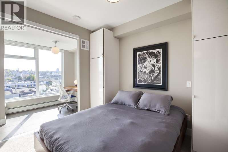 Rarely available top-floor residence offering unobstructed Vancouver views. This well-designed 1 Bedroom + Den + Flex home boasts soaring 8´4 ceilings, custom walk-in closets, & an efficient layout that maximizes every inch of space. The spacious updated kitchen features full-sized appliances & plenty of storage, while the smart floor plan ensures no wasted space-ideal for modern city living. Large south-facing windows flood the home with natural light, creating a bright & inviting atmosphere throughout the day. Enjoy the False Creek lifestyle, with the Seawall right outside your door & both the Canada & Expo SkyTrain stations just 500 metres away. Cafés, restaurants, Olympic Village, & vibrant neighbourhood amenities are all within easy walking distance. Potential to add A/C. (id:58403)