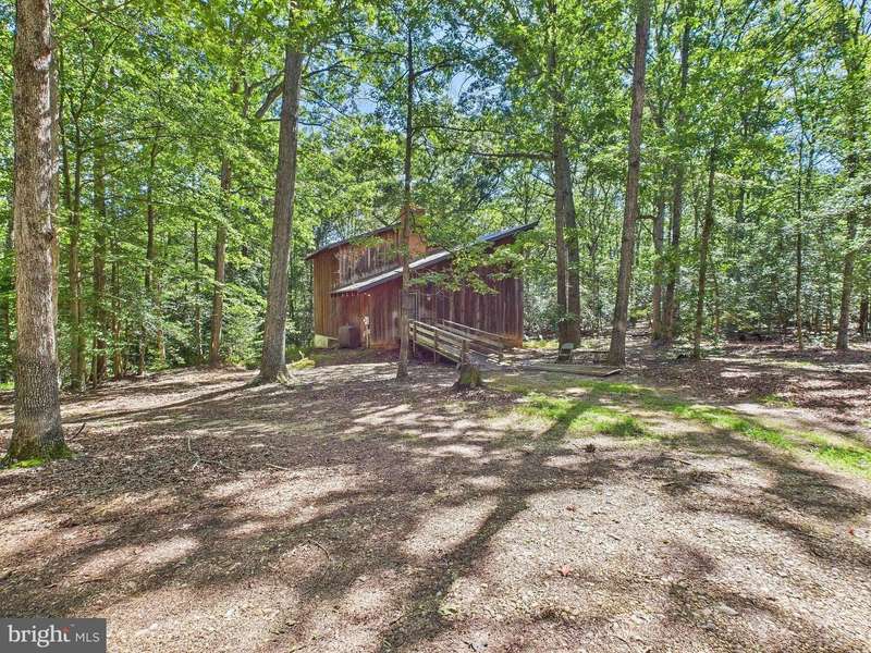 Tucked away on a beautiful 3 acre lot sits this unique property fully secluded and tranquil. Built with Pine siding, 315 ft dug well, and a 3 year old metal roof. Envision the possibilities and potential with the 2 story high ceiling, wood interior, and large windows letting light and nature view flow in. Wood flooring throughout most of the home was repurposed from a roller skating rink! The main level provides a primary bedroom, kitchen, laundry, and cozy living area with grand fireplace. Upstairs is potential for 2 more bedrooms, full bath, and loft space. Full unfinished basement with wood stove and lots of room for storage, workshop, or tools. New pipe at basement flew- 200 amp electric panel all 12 gauge wire copper. This is a great property for anyone looking for a passion project with a vision!