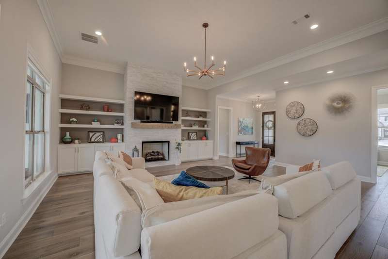 Barely Lived in. Stunning Magnolia Custom built Home in Sought-After Collierville! This elegant 5-bedroom, 4.5-bathroom residence offers over 4600 sq. ft. of meticulously designed living space. Built in 2021, this home boasts an open-concept floor plan with soaring ceilings, hardwood floors, and exquisite millwork throughout. The gourmet kitchen features high-end stainless steel appliances, quartz countertops, a spacious island, and custom cabinetry?perfect for entertaining! The luxurious primary suite on the main level includes a spa-like bath with a soaking tub, walk-in shower, and dual vanities. A private sitting area off the primary bedroom provides the perfect space for relaxation or could serve as a nursery or home office. Upstairs, find generously sized bedrooms, a bonus/media room, and ample storage. Wrought iron staircase and a fully screened sunroom to enhance the home's charm. Situated on a 0.33-acre lot with a three-car garage, & top rated Collierville Schools.