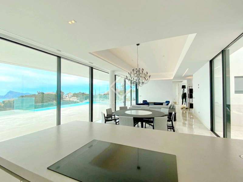 Lucas Fox presents this exceptional villa in the prestigious area of Altea Hills, with panoramic sea views. This magnificent 500 m² residence sits on a generous 1,586 m² plot , offering great privacy. The villa has design details that combine modernity with Mediterranean warmth. The property has five exquisite bedrooms, each with its own bathroom. The main bedroom, located on the main floor , has a private bathroom, a dressing room and direct access to a private terrace with the incredible pool and views of the Mediterranean. Exterior, a swimming pool is offered, integrated with the design of the exterior space. Among the outdoor spaces, several well-kept garden areas are offered, with lush vegetation and several elegant rest areas . The property also features practical amenities, such as a closed two-car garage and an outdoor parking area for several additional vehicles. This property in Altea Hills combines modern comfort with outdoor areas , as well as beautiful views. For more information do not hesitate to contact us at altea@lucasfox.es.