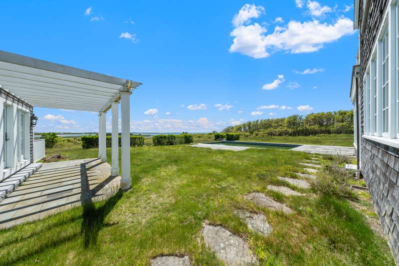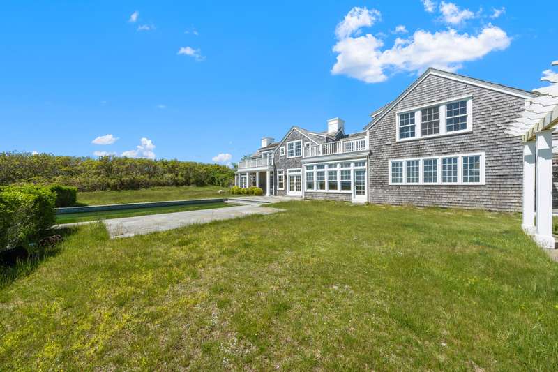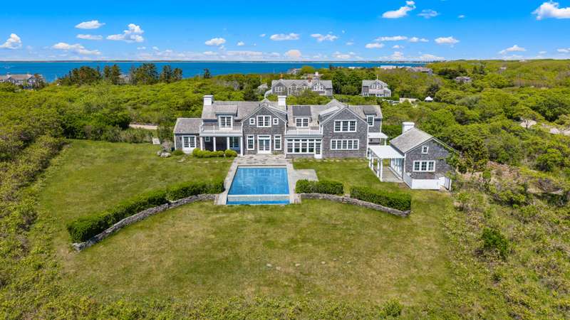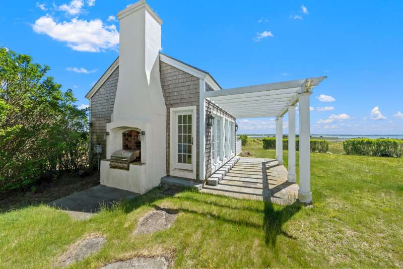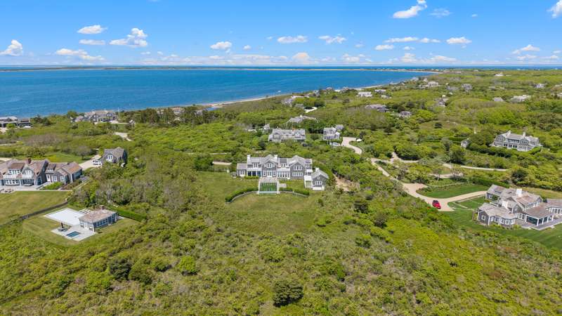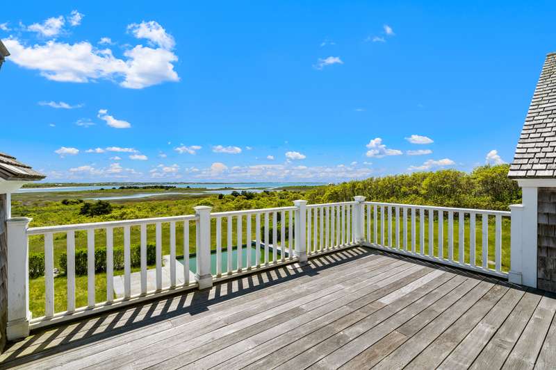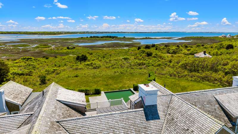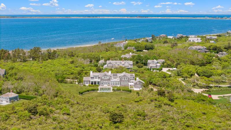 Exceptional Nantucket Compound with Breathtaking Harbor Views designed by Botticelli & Pohl. Set high above Pocomo with sweeping views of Polpis Harbor and Nantucket Town beyond, this exceptional five-bedroom, three full and one half bath main house captures the essence of coastal charm and island living. Thoughtfully designed compound for both relaxation and entertaining, the home features traditional first-floor open-concept living with a gourmet kitchen equipped with granite countertops, stainless appliances, a large island, and seamless flow into the dining and living areas. Two comfortable guest bedrooms on the main level offer privacy and convenience with a shared bath, while the second floor is dedicated to the primary suite and two additional bedrooms with a Jack and Jill bath. The primary bedroom features a serene sitting room, private study, luxurious bath with jacuzzi tub and separate stall shower, and a private deck to take in the panoramic views. The exterior is just as
