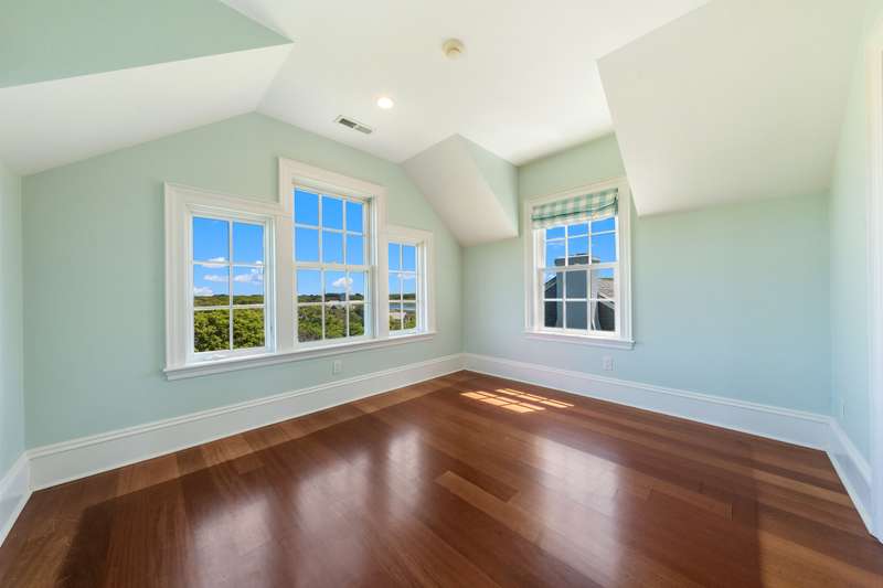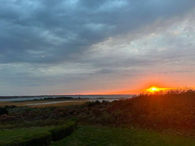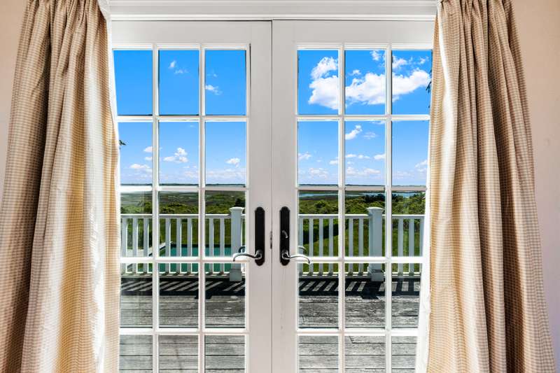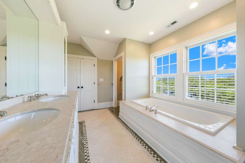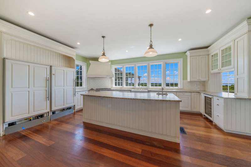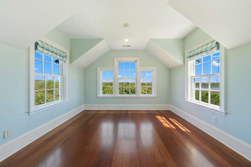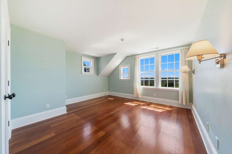 Exceptional Nantucket Compound with Breathtaking Harbor Views designed by Botticelli & Pohl. Set high above Pocomo with sweeping views of Polpis Harbor and Nantucket Town beyond, this exceptional five-bedroom, three full and one half bath main house captures the essence of coastal charm and island living. Thoughtfully designed compound for both relaxation and entertaining, the home features traditional first-floor open-concept living with a gourmet kitchen equipped with granite countertops, stainless appliances, a large island, and seamless flow into the dining and living areas. Two comfortable guest bedrooms on the main level offer privacy and convenience with a shared bath, while the second floor is dedicated to the primary suite and two additional bedrooms with a Jack and Jill bath. The primary bedroom features a serene sitting room, private study, luxurious bath with jacuzzi tub and separate stall shower, and a private deck to take in the panoramic views. The exterior is just as