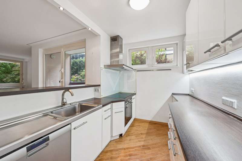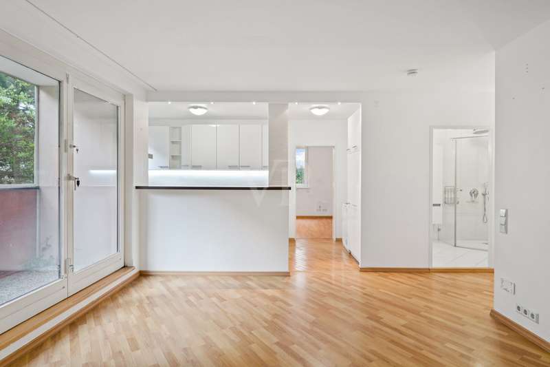 Urban living in Lankwitz with a peaceful garden oasis: welcome to your new home with a large terrace and a wonderful view of the well-tended garden! This 3-room apartment on the first floor of a well-kept apartment building, most of which has already been modernized, boasts a well thought-out floor plan and a special highlight: a spacious terrace with direct access to the beautifully landscaped communal garden. A green refuge in the middle of the city! A spacious living and dining room with a semi-open kitchen, a well-designed bedroom and an additional, smaller room that can be accessed from the bedroom - ideal as a study or dressing room - await you in a living space of approx. 92 m². The kitchen is modernly equipped and invites you to cook together. The bathroom has a floor-to-ceiling shower and modern fittings. There is also a small separate utility room with a washing machine connection. A large cellar room rounds off the offer. This apartment combines modern living comfort with a natural lifestyle in an urban setting - perfect for singles, couples or home office professionals. We would be happy to show you this lovely apartment during a personal viewing! If you are interested in acquiring a spacious 1-bedroom apartment in addition to this apartment, which is located directly next door and can be connected to the 3-bedroom apartment via a wall opening, please contact us.