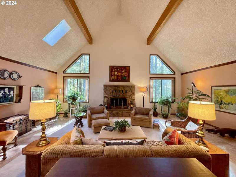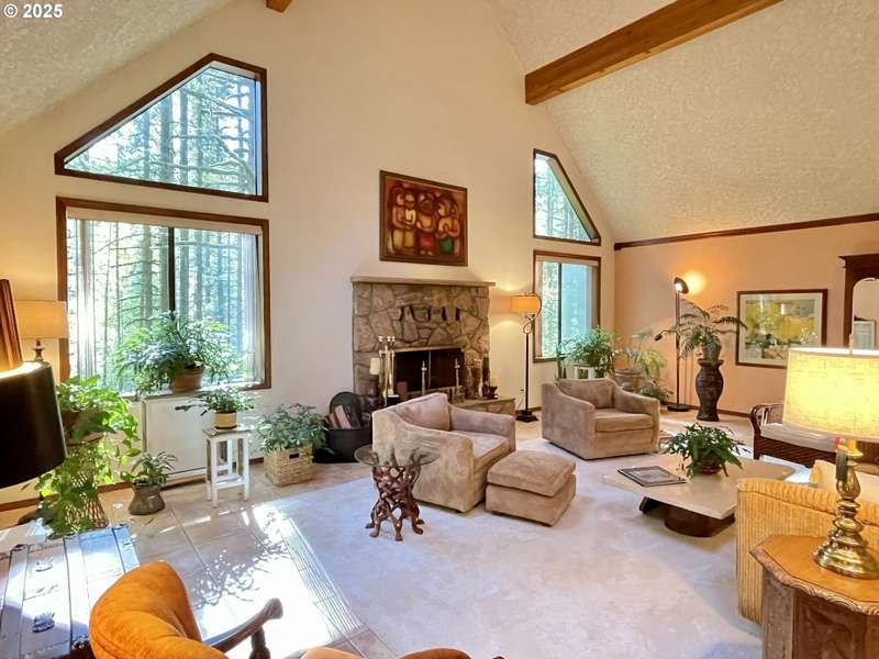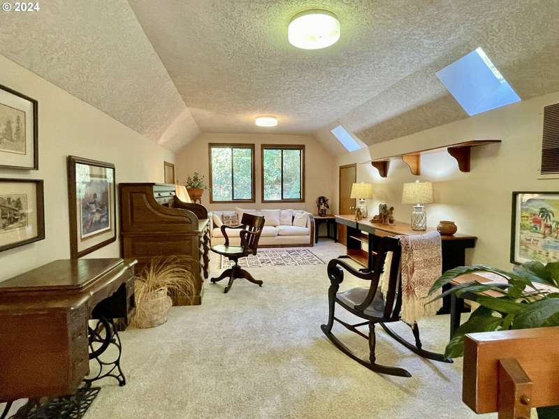 Escape to the tranquility of this beautiful wooded property just north of Fern Prairie Market and bordering Matney Creek, and feel what it's like to come back to nature. Entertain in the spacious living room with high vaulted ceilings, skylights and exposed beams and relax in the oversized primary suite. Enjoy two additional bedrooms with joining pass through bathroom with separate vanities, plus an upper level loft/office that overlooks the living room. All this plus a large laundry room off the oversized garage. Approximately two acres are fenced and a large doggie door in the kitchen leads to front deck. A trail by the fence goes to a picnic clearing creek-side. Come discover this special, unique property today.