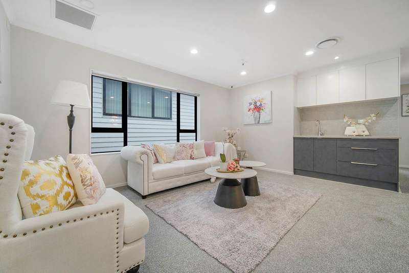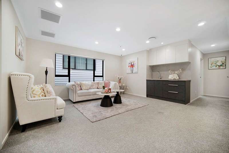 Experience stunning spatial volume and modern elegance with double-height ceilings and dual chandeliers that make a powerful style statement the moment you enter. Discover a rare gem in the one and only original prestigious area of Flatbush, a neighbourhood where homes have commanded peak prices and set the standard for luxury living. Nestled on the quietest street, surrounded by reserves and blessed with beautiful views, this property offers a serene and exclusive lifestyle. Originally 10 Year Master Builder Guarantee. Presenting a masterfully built residence of 351sqm on a generous 387 sqm section, this home makes a powerful statement. Its striking exterior combines classic weatherboard with elegant European brick, complemented by a double garage and a wide, inviting frontage with manicured lawns and off-street parking. Step inside and be greeted by a soaring, high-ceiling entrance—a hallmark of excellent design believed to welcome prosperity and positive energy. To your right, a formal lounge offers a perfect, symmetrical space for quiet conversation. Flowing through, a central dining area opens into the heart of the home: a spectacular, vast kitchen. Exceptionally long and wide, it boasts an abundance of high storage and is beautifully appointed, with cabinetry that elegantly mirrors the stunning overhead light fixtures. The home’s core is an expansive decking area, a versatile space ideal for a morning yoga practice, a gym, or an exquisite garden room. Beyond lies a magnificent open-plan family room, designed for everyday living, movie nights, and grand-scale entertaining. Seamlessly connected through large sliding doors is another huge decked oasis, offering limitless potential for a spa pool, sophisticated outdoor dining, and lush landscaping. A truly intelligent design feature is the self-contained, two-bedroom granny flat with its own kitchen. Currently tenanted by reliable and friendly tenants, it offers an excellent rental return, making this property both a perfect family home and a savvy investment. Upstairs, the luxury continues with a spacious lounge featuring a convenient butler’s pantry/storage. The bedroom accommodation is exceptional, featuring three master suites. The principal suite will truly take your breath away with a bathroom that is a sanctuary in itself, featuring dual vanities with separate mirrors, a modern freestanding bath, and an oversized shower box—a rare and desirable feature you’ll fall in love with. Two additional oversized bedrooms are serviced by another well-appointed bathroom, with one enjoying the convenience of a semi-ensuite. Perfect for a growing family seeking to upgrade with the bonus of rental income, this home is zoned for top schools including Chapel Downs School, Ormiston Junior & Senior College, and Sancta Maria College. With easy access to motorways and shopping centres, every convenience is at your doorstep. Don't miss the opportunity to own this uniquely designed and beautiful home. Contact us today to arrange a private viewing.