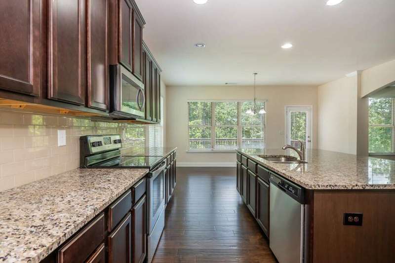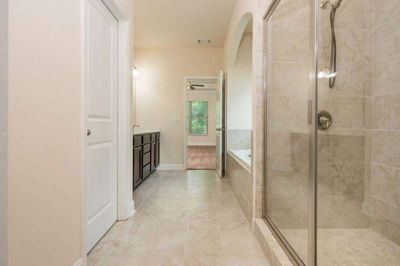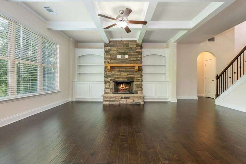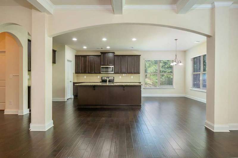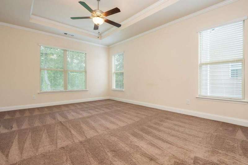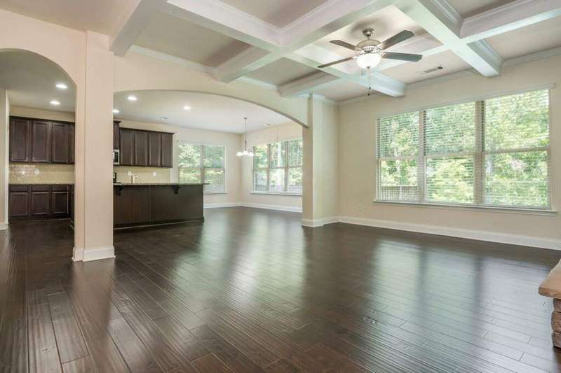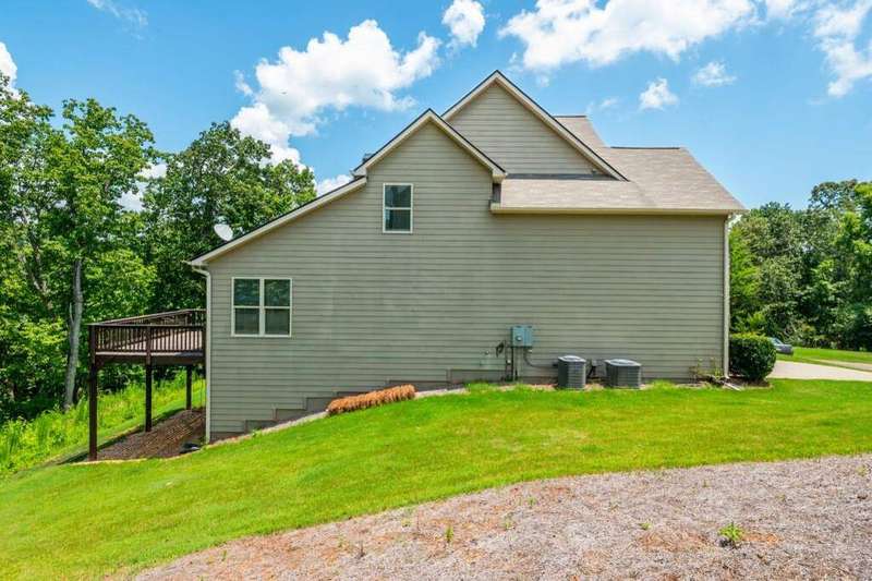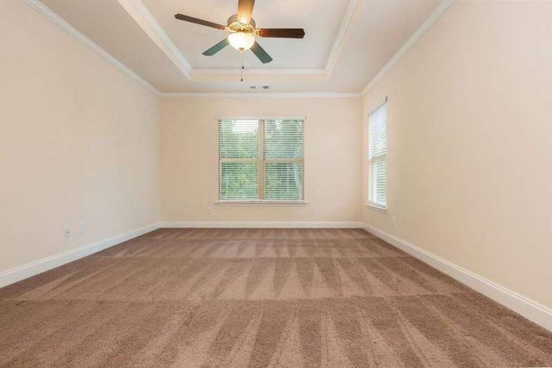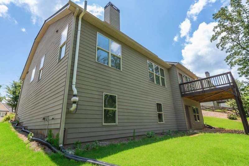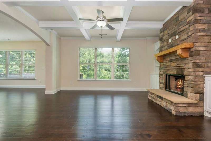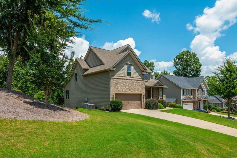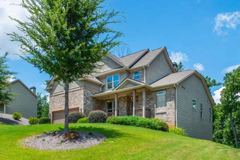 Welcome to your dream home in Cumming's desirable Montclair swim/tennis neighborhood, perfectly situated in the top-rated North Forsyth High School zone! The standout feature is the luxurious master-on-main suite, featuring tray ceilings and a spa-like bathroom with dual vanity, soaking tub, large shower, and expansive closet, ideal for seamless living. A charming front porch invites you in, leading to a grand two-story foyer with a dining room featuring wainscoting paneling and a convenient half bath. The main level offers an open-concept family room and kitchen flooded with natural light from numerous windows. The family room boasts a coffered ceiling, a stack stone fireplace, and built-in bookshelves with cabinetry. The kitchen shines with a large island with breakfast bar, kitchen table nook, recessed lighting, spacious pantry, coffee bar, and stainless-steel appliances. Step out to a large deck, great for morning coffee or evening grilling. Upstairs, enjoy a large bonus/flex space, three secondary bedrooms, and a full bathroom. The unfinished basement provides storage or potential for additional living and entertainment space, with access to the backyard. Outside, relax in the backyard with lawn space and wooded views. Enjoy shopping convenience nearby, and spend weekends at Cumming City Center or Lake Lanier, perfect destinations!