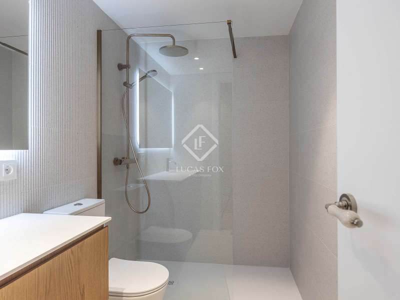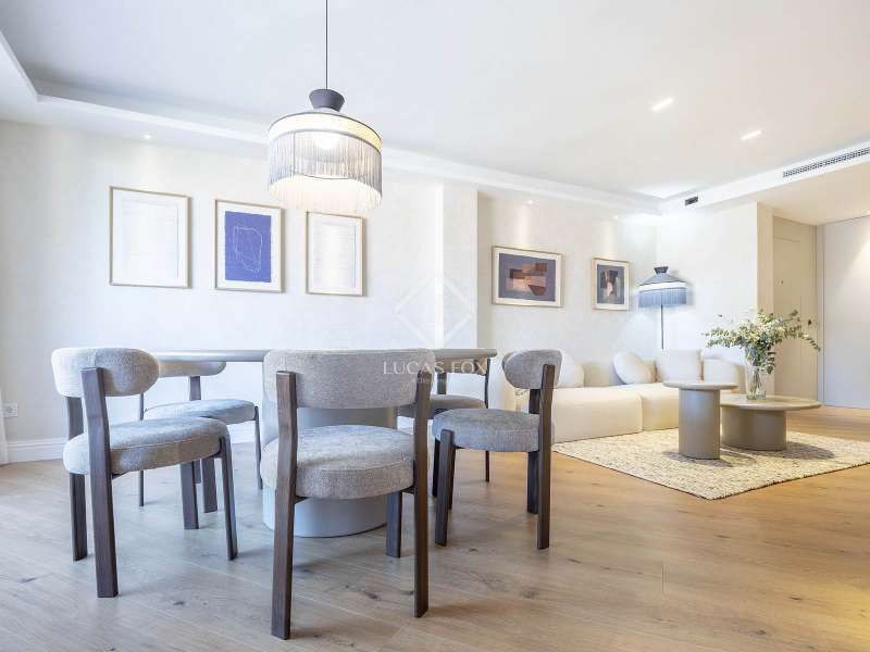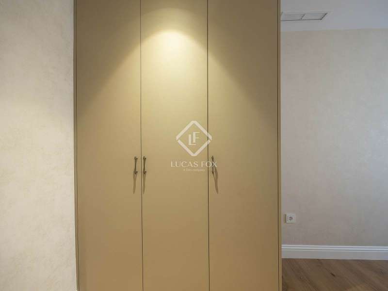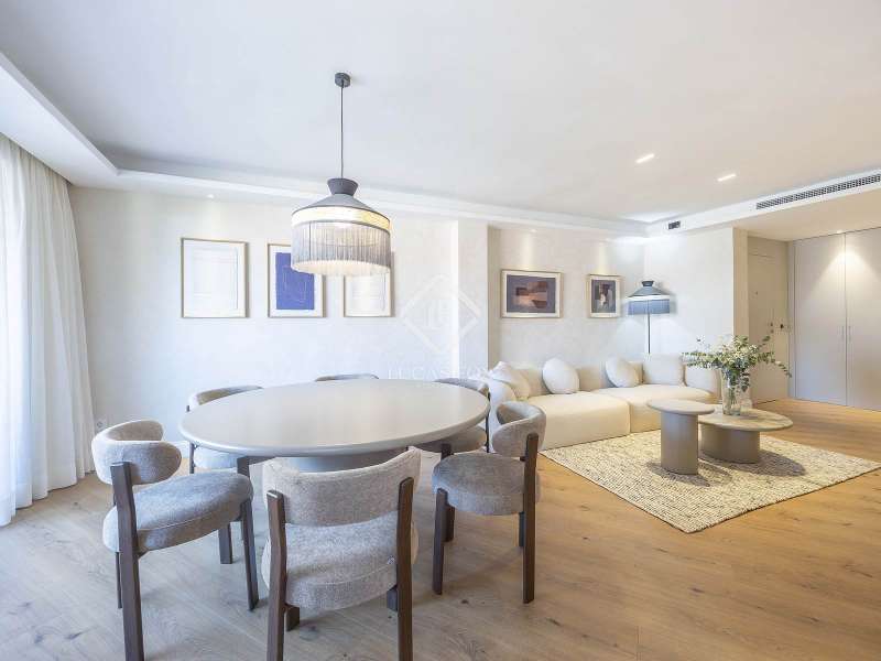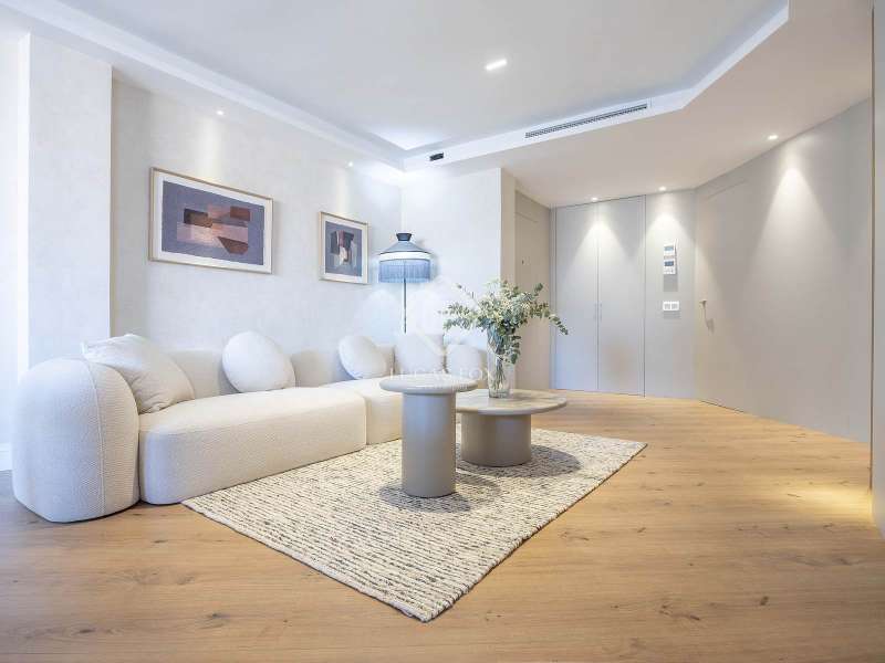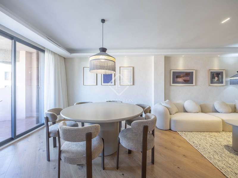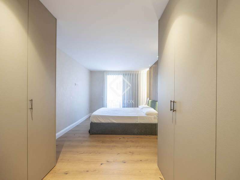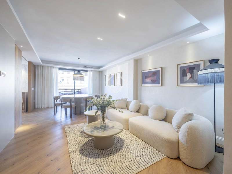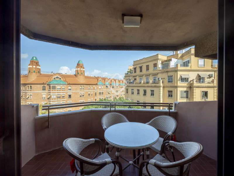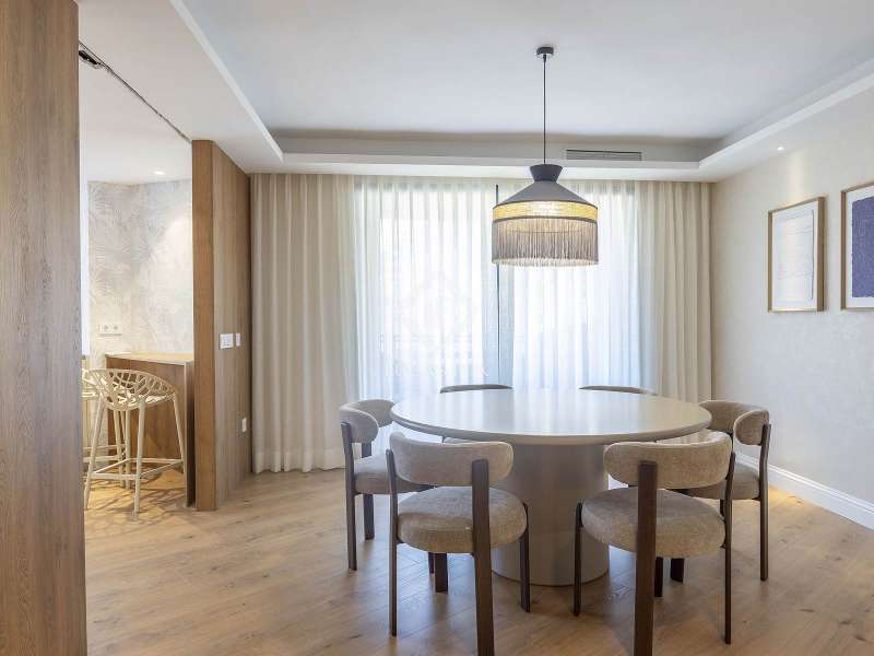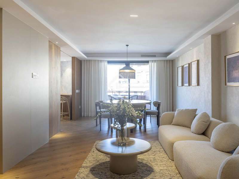 An exclusive 141 m² property with a rectangular floor and an impeccable layout that makes the most of every square foot, with virtually no hallways and all spaces spacious, bright, and perfectly connected. Located on the top floor of an elegant building with direct elevator access to the parking lot, this property offers comfort, design, and style in a privileged setting. The property has been completely renovated, incorporating all new fixtures and fittings and a carefully designed interior design project to combine functionality, comfort, and aesthetics. Fine materials and a carefully curated color palette were used, achieving perfect harmony between colors, textures, and decorative elements. The carefully thought-out lighting design enhances the feeling of spaciousness and brings warmth to each room. Access is through a entrance hall, which leads to a spacious and sunny living-dining room of generous dimensions, with direct access to a pleasant terrace with unobstructed views. The bright and cheerful kitchen, also exterior, is connected to the living room by glass doors that allow for independence without sacrificing natural light. It boasts ample storage space and furnishings that follow the same aesthetic and tonal style as the main space. It also has a practical separate laundry area . The spacious and bright main bedroom enjoys unobstructed views of the main facade and features a large area with built-in wardrobes and an en-suite bathroom with unique, contemporary finishes. The second bedroom, also double and with an en-suite bathroom , maintains the same quality and attention to detail, with a distinct color scheme that adds its own personality. The property is completed by a third, generously sized room , ideal as an additional bedroom , study , or study area, and a third full bathroom . The finishes are top-quality: laminate floor , lacquered interior carpentry, double-chamber exterior enclosures with thermal and acoustic insulation, and a ducted air conditioning system. The property is being sold as shown in the photographs, fully furnished and ready to move in. It also has a parking space in the same building, not included in the price, which can be purchased for €30,000. Overall, it's an elegant, comfortable property brimming with character, combining timeless design, functionality, and warmth in an unbeatable setting.