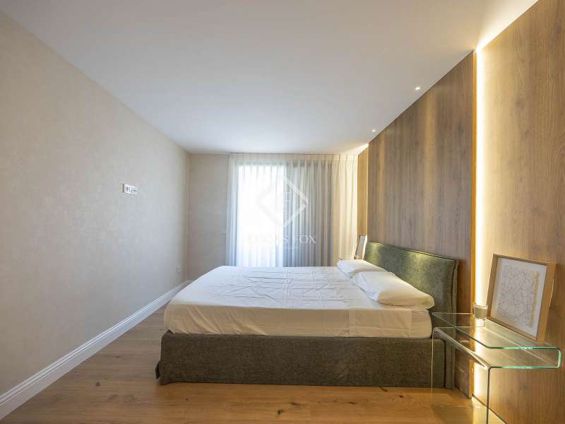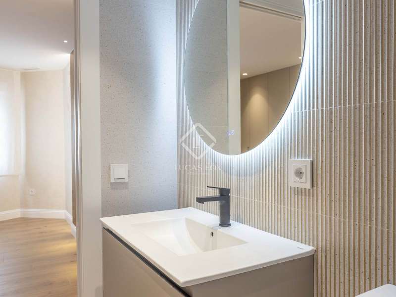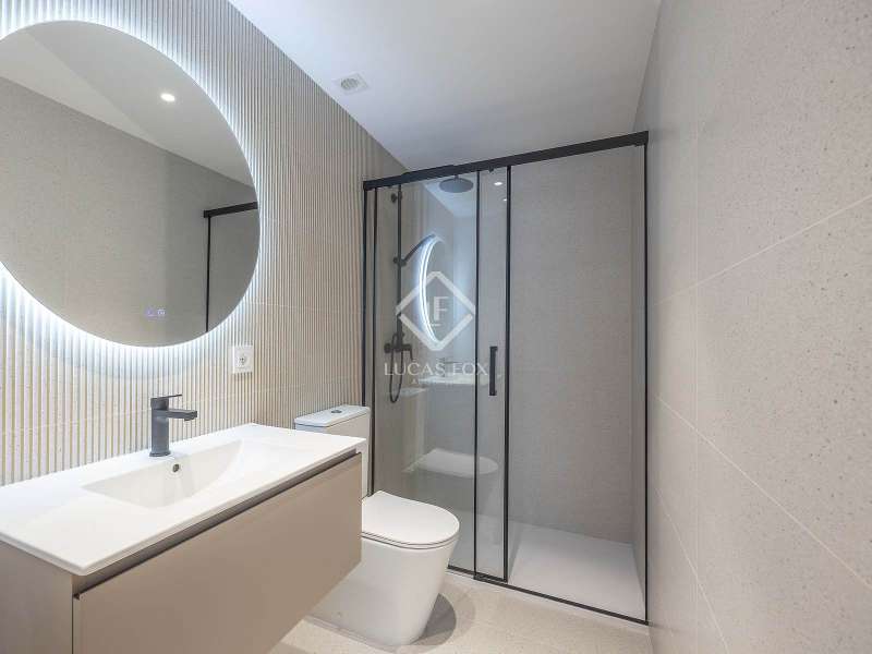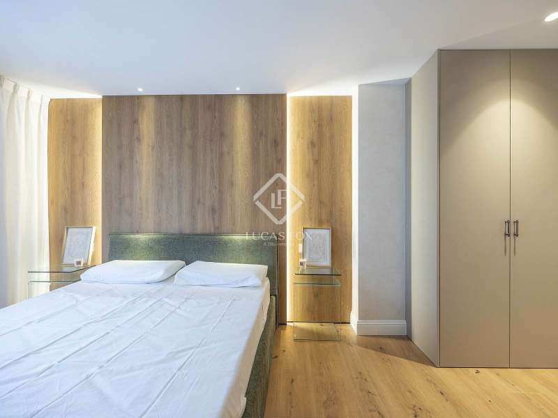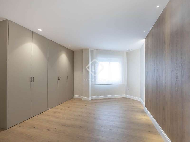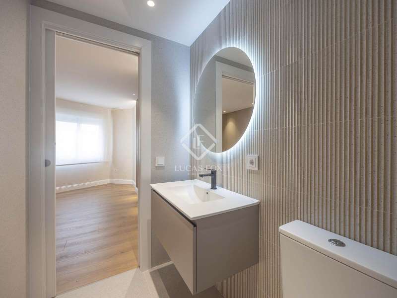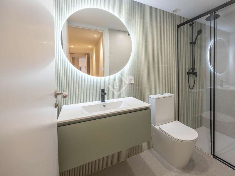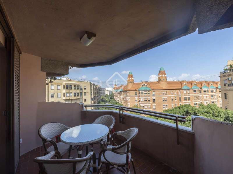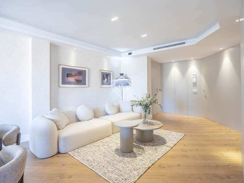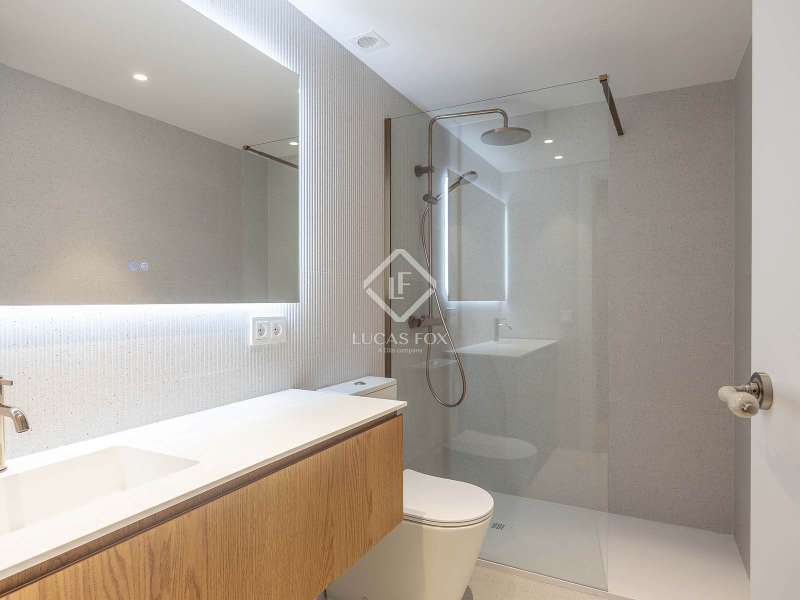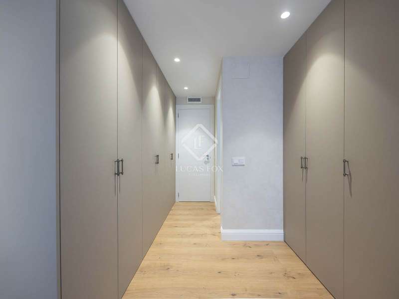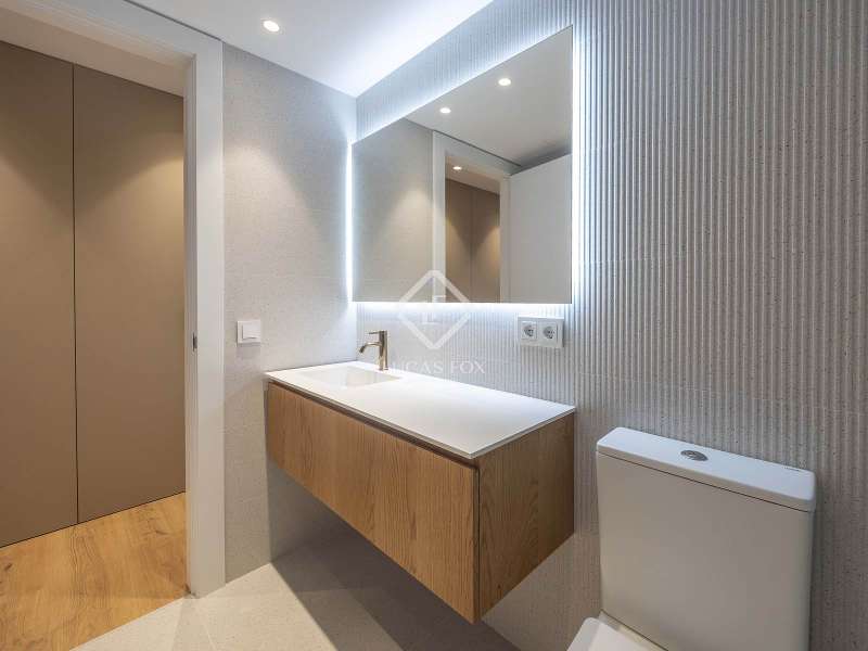An exclusive 141 m² property with a rectangular floor and an impeccable layout that makes the most of every square foot, with virtually no hallways and all spaces spacious, bright, and perfectly connected. Located on the top floor of an elegant building with direct elevator access to the parking lot, this property offers comfort, design, and style in a privileged setting. The property has been completely renovated, incorporating all new fixtures and fittings and a carefully designed interior design project to combine functionality, comfort, and aesthetics. Fine materials and a carefully curated color palette were used, achieving perfect harmony between colors, textures, and decorative elements. The carefully thought-out lighting design enhances the feeling of spaciousness and brings warmth to each room. Access is through a entrance hall, which leads to a spacious and sunny living-dining room of generous dimensions, with direct access to a pleasant terrace with unobstructed views. The bright and cheerful kitchen, also exterior, is connected to the living room by glass doors that allow for independence without sacrificing natural light. It boasts ample storage space and furnishings that follow the same aesthetic and tonal style as the main space. It also has a practical separate laundry area . The spacious and bright main bedroom enjoys unobstructed views of the main facade and features a large area with built-in wardrobes and an en-suite bathroom with unique, contemporary finishes. The second bedroom, also double and with an en-suite bathroom , maintains the same quality and attention to detail, with a distinct color scheme that adds its own personality. The property is completed by a third, generously sized room , ideal as an additional bedroom , study , or study area, and a third full bathroom . The finishes are top-quality: laminate floor , lacquered interior carpentry, double-chamber exterior enclosures with thermal and acoustic insulation, and a ducted air conditioning system. The property is being sold as shown in the photographs, fully furnished and ready to move in. It also has a parking space in the same building, not included in the price, which can be purchased for €30,000. Overall, it's an elegant, comfortable property brimming with character, combining timeless design, functionality, and warmth in an unbeatable setting.