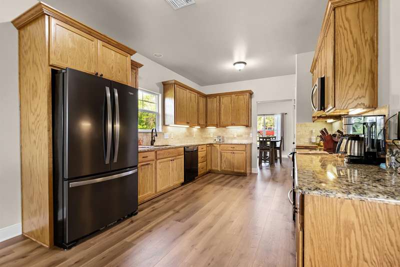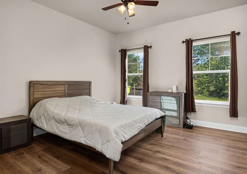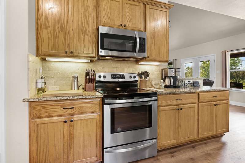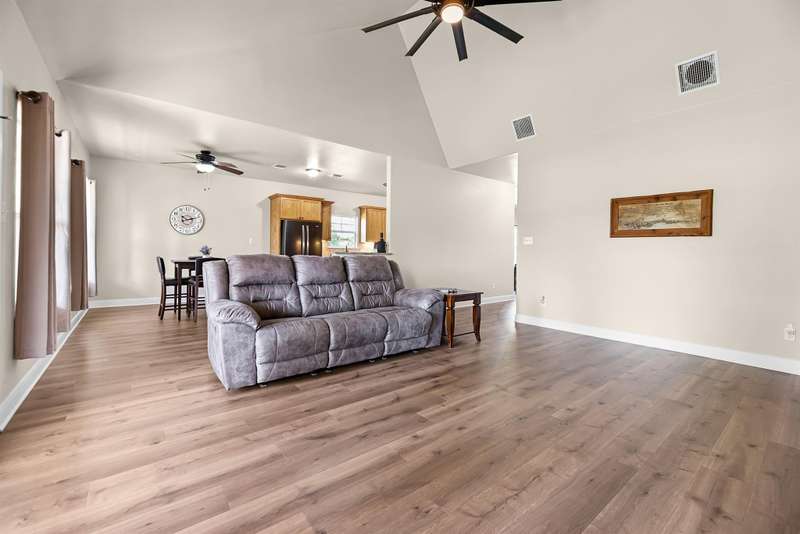 Experience the perfect blend of modern comfort and country charm in this beautifully designed custom farmhouse set on 1.023 acres. Thoughtfully crafted with soaring vaulted ceilings and an abundance of natural light, the open-concept layout creates a warm, welcoming atmosphere ideal for both everyday living and entertaining. The kitchen flows seamlessly into the spacious family room and features stainless steel appliances. The expansive owner’s suite offers a peaceful retreat with double vanities, a luxurious soaking tub, a custom oversized shower, and walk-in closets. Newly painted exterior and new vinyl flooring throughout. Enjoy lightning-fast connectivity with fiber optic internet available. Enjoy quiet evenings on the covered front porch and take in the serene surroundings. Ideally located less than 30 minutes from Austin, Samsung, and Tesla, this home offers the tranquility of country living with convenient access to city amenities. A rare opportunity to enjoy space, style, and simplicity in one exceptional property.