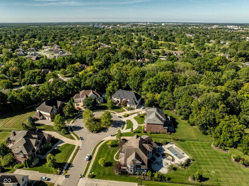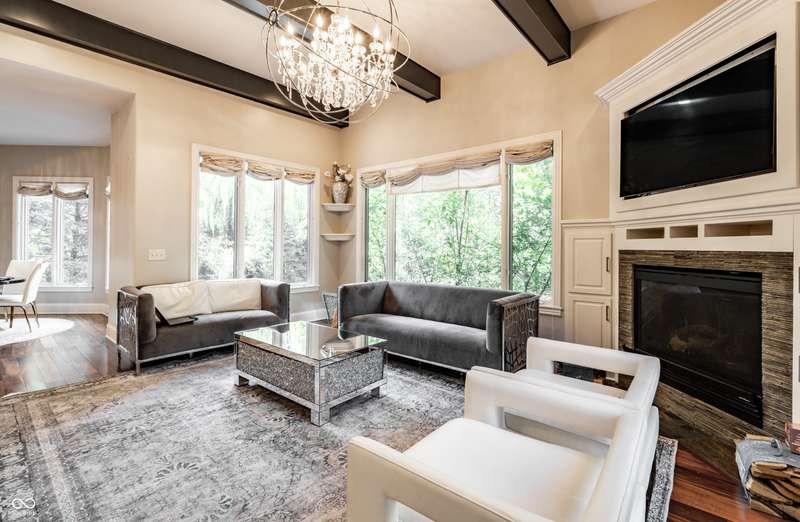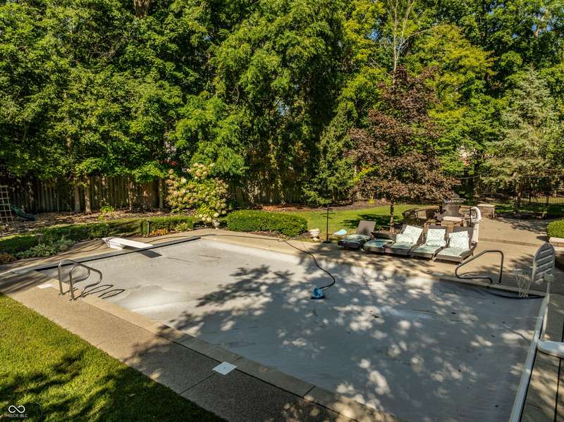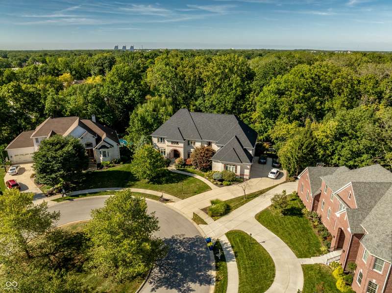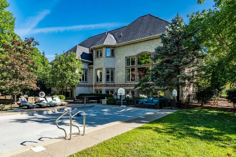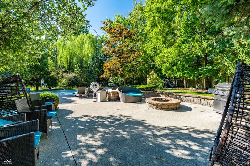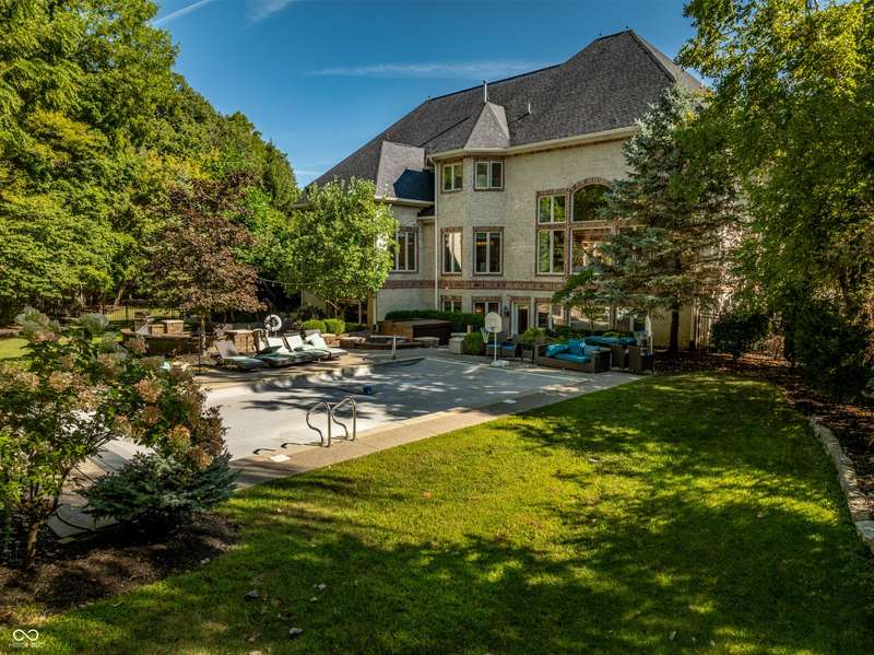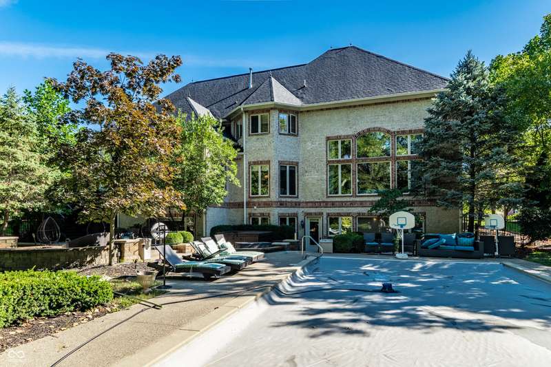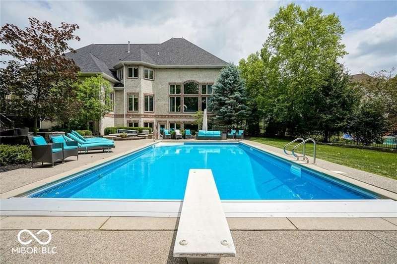 Nestled at 10470 Roxley Bend, Carmel, IN, this luxurious single-family residence in Carmel presents an amazing design and top-tier materials throughout, offering an unparalleled living experience. This house is in great condition. The living room is a grand space, defined by its high ceiling and inviting fireplace, offering a warm ambiance for gatherings or quiet evenings; crown molding and a beamed ceiling add architectural interest and sophistication. The kitchen is a culinary dream, featuring stone countertops, a custom range hood, and shaker cabinets, creating a stylish and functional workspace; a large kitchen island and kitchen peninsula offer ample space for meal preparation and casual dining, complemented by a backsplash, double oven, stovetop, and built-in refrigerator. Imagine preparing meals in this beautiful space. The bathrooms offer a spa-like experience, with tiled walk-in showers that provide a luxurious and refreshing escape. Step outside to discover your private oasis, complete with a deck, outdoor dining area, and patio, perfect for entertaining or simply enjoying the serene surroundings; a fire pit adds warmth and ambiance for cool evenings, while the private pool, featuring a diving board, provides endless summer fun; a hot tub offers relaxation and rejuvenation. The property also includes a cinema room for immersive entertainment experiences. The expansive 30492 square feet lot offers a woods view.This residence features five full bathrooms and two half bathrooms, along with five bedrooms spread across two stories, encompassing 5414 square feet of living area. Built in 2006, the property is located in a desirable residential area and offers an open floor plan. This is an exceptional opportunity to own a luxurious home designed for both comfort and sophisticated living.