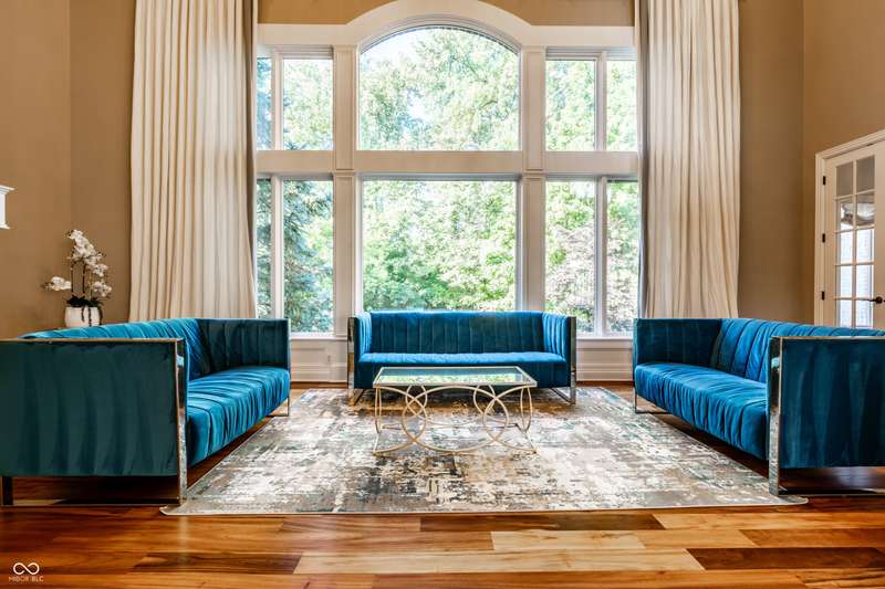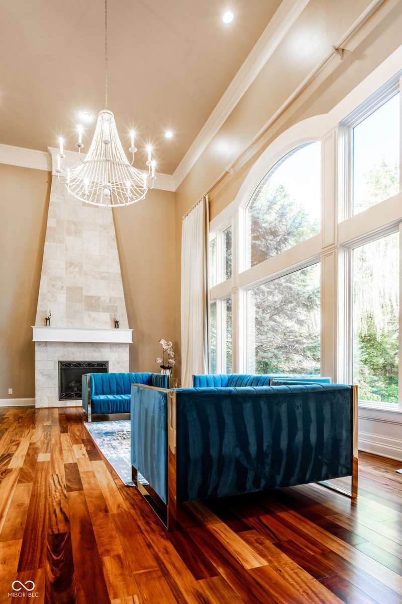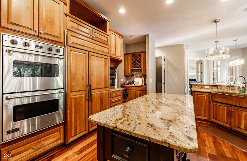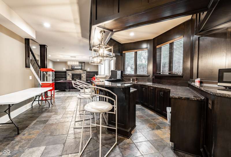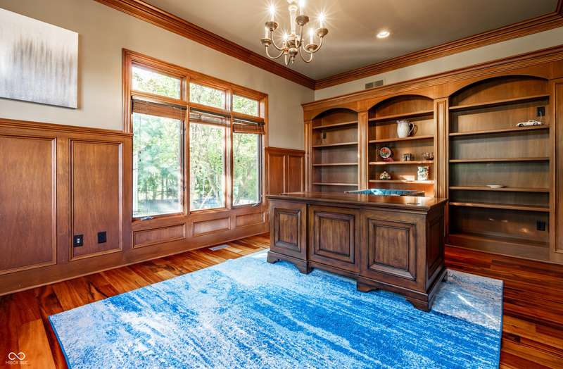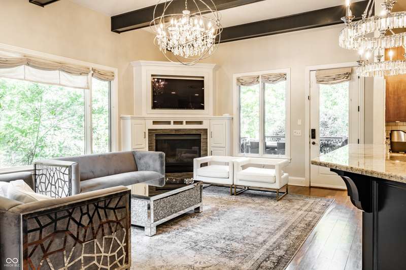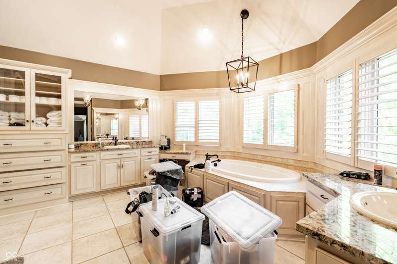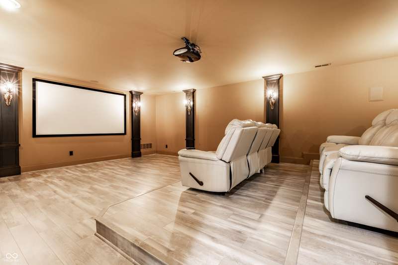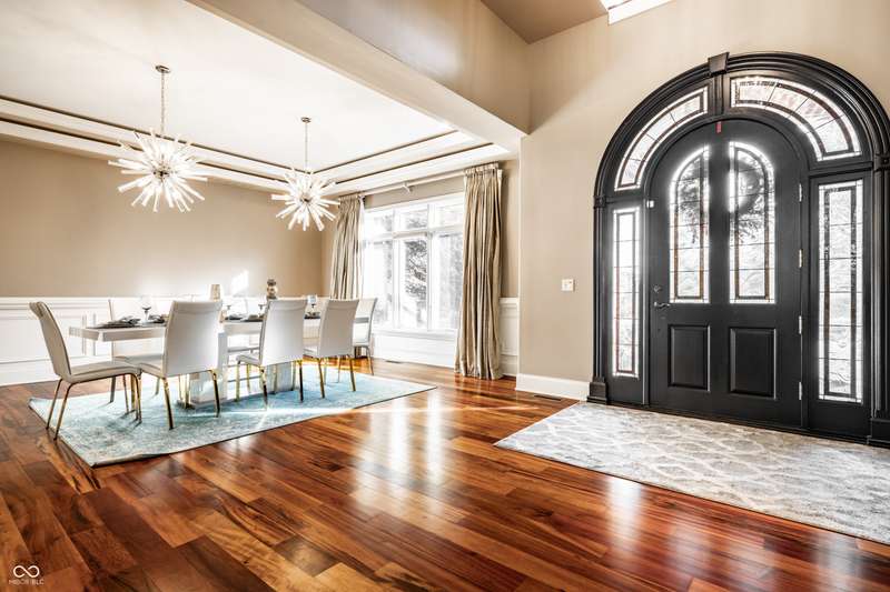 Nestled at 10470 Roxley Bend, Carmel, IN, this luxurious single-family residence in Carmel presents an amazing design and top-tier materials throughout, offering an unparalleled living experience. This house is in great condition. The living room is a grand space, defined by its high ceiling and inviting fireplace, offering a warm ambiance for gatherings or quiet evenings; crown molding and a beamed ceiling add architectural interest and sophistication. The kitchen is a culinary dream, featuring stone countertops, a custom range hood, and shaker cabinets, creating a stylish and functional workspace; a large kitchen island and kitchen peninsula offer ample space for meal preparation and casual dining, complemented by a backsplash, double oven, stovetop, and built-in refrigerator. Imagine preparing meals in this beautiful space. The bathrooms offer a spa-like experience, with tiled walk-in showers that provide a luxurious and refreshing escape. Step outside to discover your private oasis, complete with a deck, outdoor dining area, and patio, perfect for entertaining or simply enjoying the serene surroundings; a fire pit adds warmth and ambiance for cool evenings, while the private pool, featuring a diving board, provides endless summer fun; a hot tub offers relaxation and rejuvenation. The property also includes a cinema room for immersive entertainment experiences. The expansive 30492 square feet lot offers a woods view.This residence features five full bathrooms and two half bathrooms, along with five bedrooms spread across two stories, encompassing 5414 square feet of living area. Built in 2006, the property is located in a desirable residential area and offers an open floor plan. This is an exceptional opportunity to own a luxurious home designed for both comfort and sophisticated living.