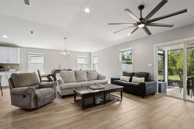 Welcome to this beautifully maintained 4-bedroom, 2-bathroom home in the desirable River Glen community of Yulee, FL. Built in 2023, this residence offers modern comfort with thoughtful upgrades throughout. The spacious split floor plan features wood-look tile throughout the main living areas and plush carpet in all bedrooms for added comfort. The open-concept of this home creates a spacious and inviting atmosphere, ideal for entertaining and everyday living. The heart of the home is the stunning kitchen, featuring granite countertops, a large island, stainless steel appliances, walk-in pantry and ample cabinet space. The primary suite offers a peaceful retreat with a private en suite bathroom adorned with dual vanity, glass enclosed tiled shower and a walk-in closet. Additional upgrades include a whole-home ADT security system, water softener and purification system, honeycomb blinds throughout, and a washer and dryer for your convenience. Enjoy the outdoors year-round on your screened-in porch, overlooking a fenced backyard, perfect for relaxing or entertaining. Community amenities include resort-style pool, kayak launch, fitness center,� clubhouse, splash pad, playground, basketball courts and scenic walking trails. Schedule today to view this beautiful home.
