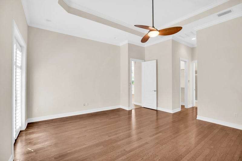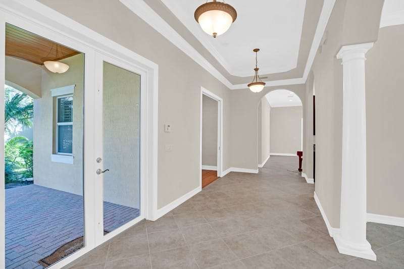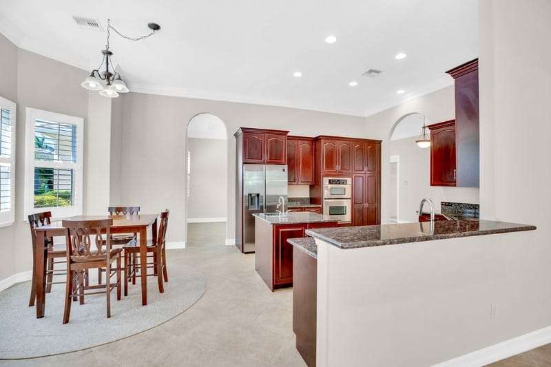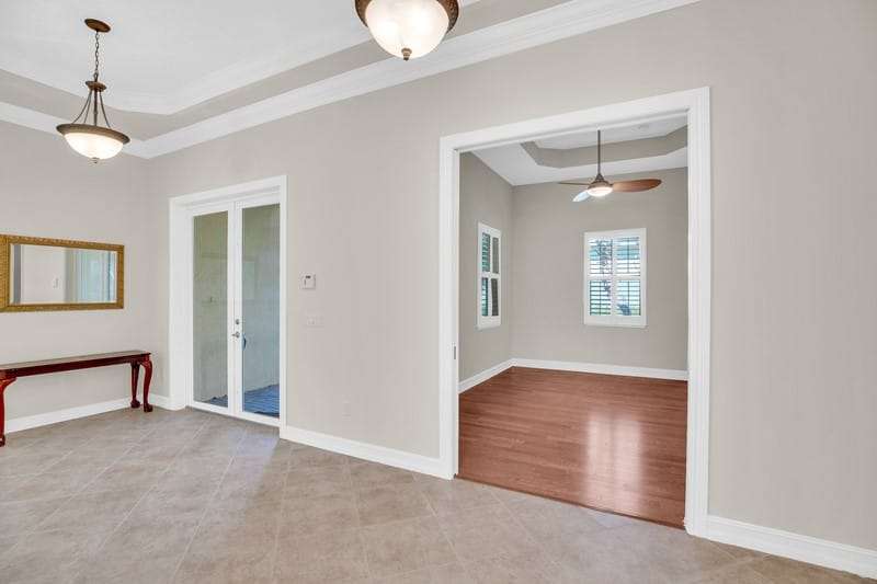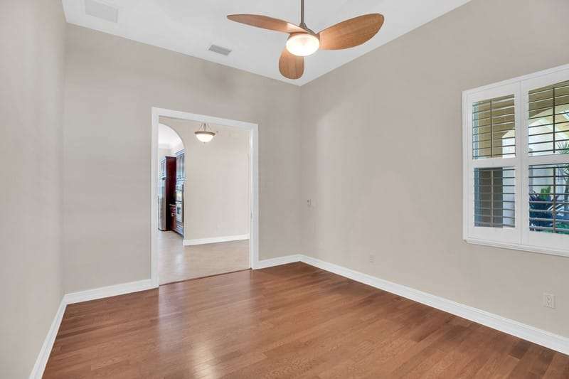 This stunning home with 4-bed, 4.5-bath plus a separate den/office offers approx 3,454 sf of living space on a private .35-acre lot backing up to a preserve. Features include tile & wood floors, plantation shutters, crown molding & granite countertops throughout. Enjoy a saltwater screened pool, impact resistant windows & doors, & 3 car garage. Primary suite is on the 1st floor, with a grand 2nd suite upstairs. HOA covers lawn care for low maintenance lifestyle. Clubhouse, pool, gym, & more. Close to beaches, dining, shopping, & medical facilities. Luxury, comfort & convenience. Rmszapprox