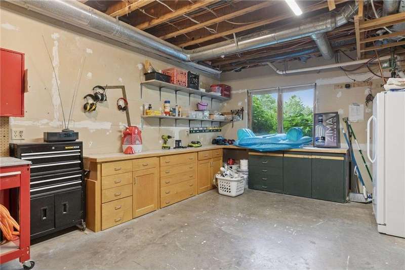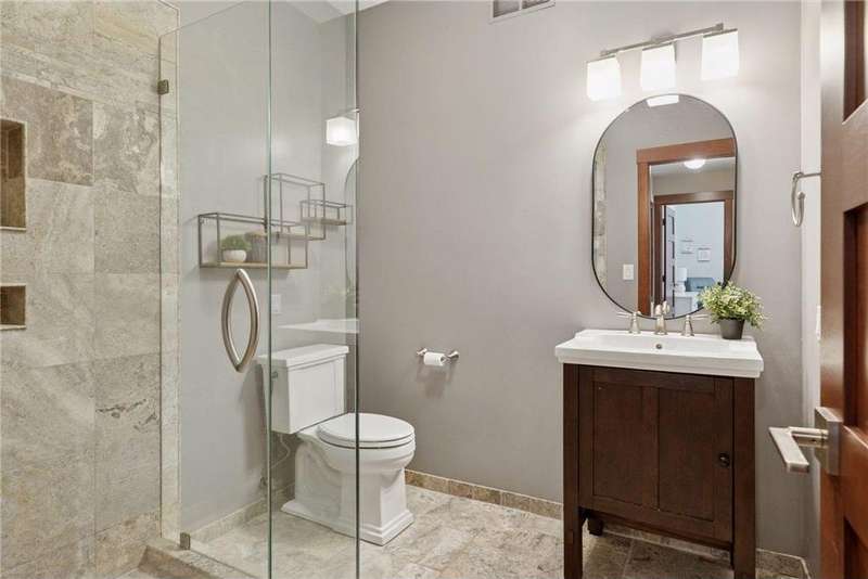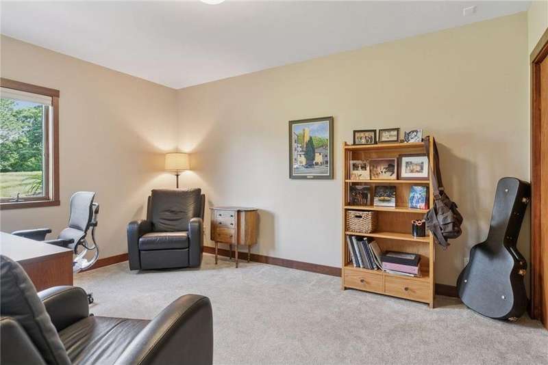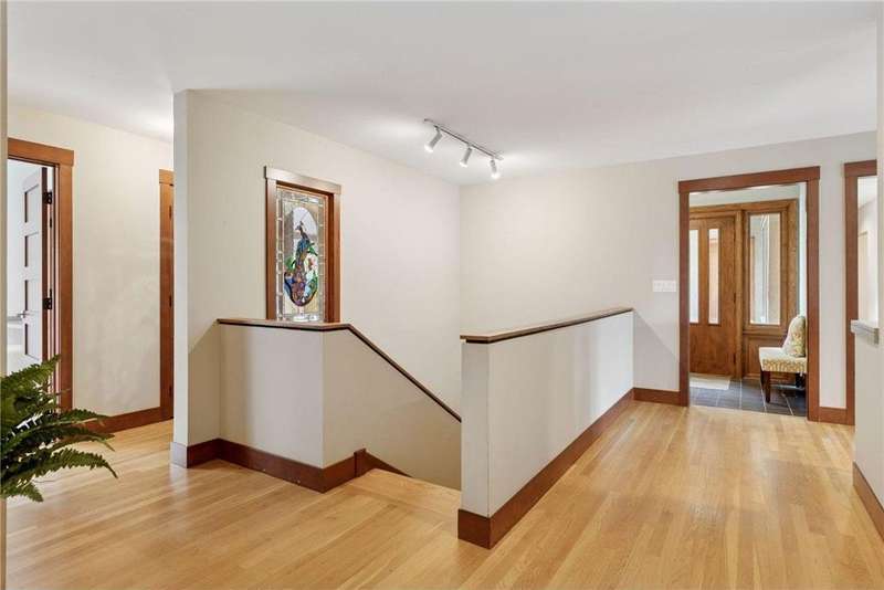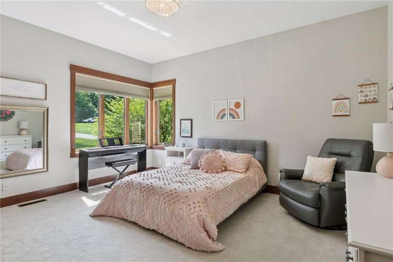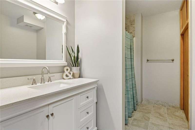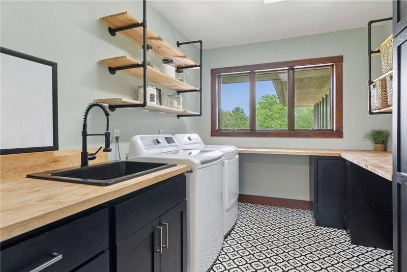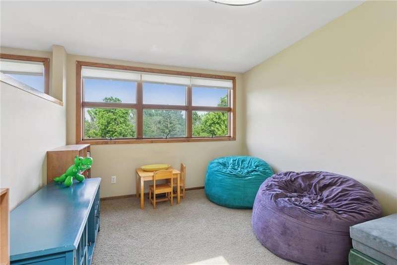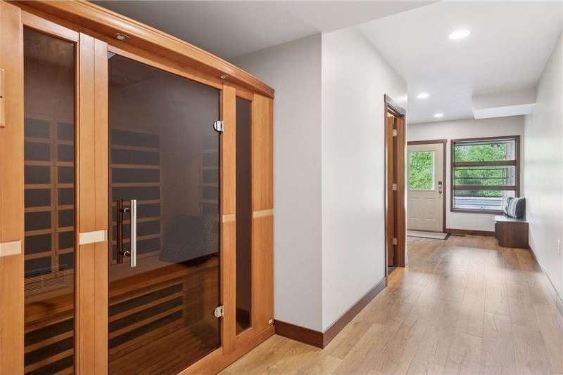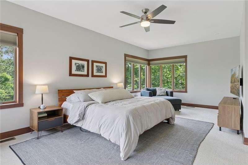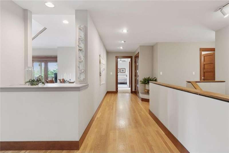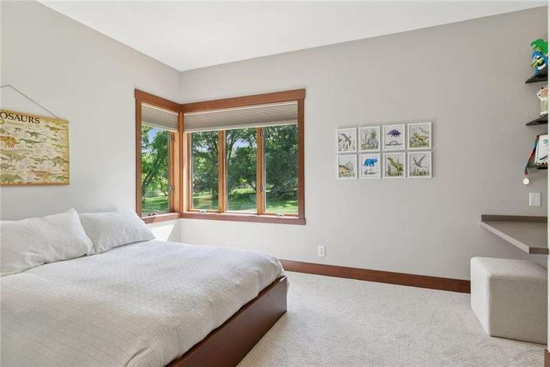 Tucked away on a beautifully wooded 5.42-acre lot in the heart of Afton, this striking mid-century modern home is the perfect blend of timeless design and thoughtful modern updates. Every detail of this property exudes style, comfort, and functionality—from the open floor plan and dramatic vaulted ceilings to the sun-drenched skylights and architectural double-sided woodburning fireplace, seamlessly connecting the main living space with a cozy covered back deck. The heart of the home is the fully remodeled kitchen (2019), where sleek Quartz countertops, soft-close cabinetry, a statement vent hood, and premium appliances—including a Kitchenaid ice machine—make entertaining a breeze. Warm hardwood floors lead to a stunning sunroom and three spacious main-level bedrooms, while recently updated bathrooms add fresh sophistication with high-end finishes. Step outside to experience the ultimate in resort-style living: a heated saltwater pool, expansive 2-tiered maintenance-free deck, and your very own outdoor sport court and pickleball court for endless summer enjoyment. A tree house tucked among the trees adds a whimsical touch for guests of all ages. A newly constructed (2022) 25x29 detached garage offers the perfect setup for a workshop, extra storage, or even boat parking. Additional highlights include new carpet, new interior doors, a radon mitigation system, sauna, and a newer roof (2018). This home is not just a property—it's a lifestyle. Experience peace, privacy, and inspired design just minutes from downtown Afton