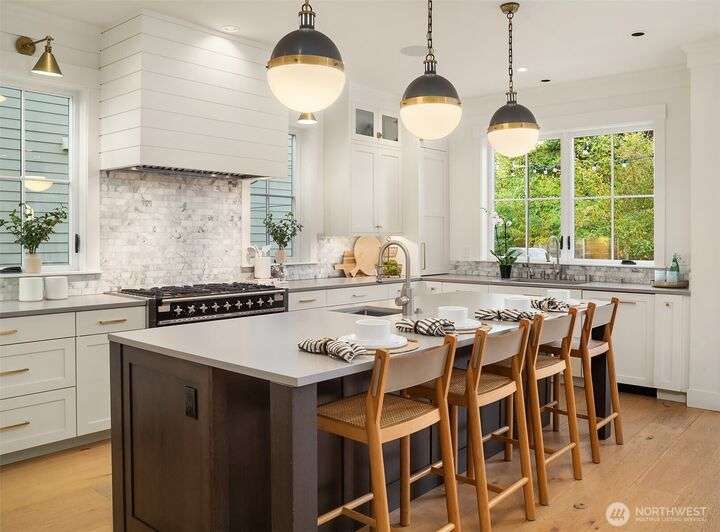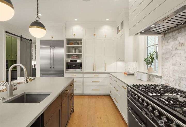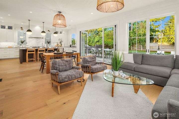 Custom home, born from an award winning interior designer’s vision, crafted to cradle everyday moments. Step into a formal living and dining room, then into a sprawling, lovingly detailed kitchen w/ premium appliances, and a second sunlit dining space flowing into a generous family room. Floor-to-ceiling la cantina doors reveal a patio w/ lush garden beds , faux turf—an invitation for intimate gatherings and starry evenings. A cozy bedroom/office, 3/4 bath, and walk-in pantry complete this floor. Upstairs, a generous primary suite w/ a dream walk-in closet and spa bath, plus three warm bedrooms and 1 full bath and a 3/4 bath. Lower level offers a 2 car garage and an extra bedroom. Close to UW, Children's, SR-520, Light Rail and U Village.