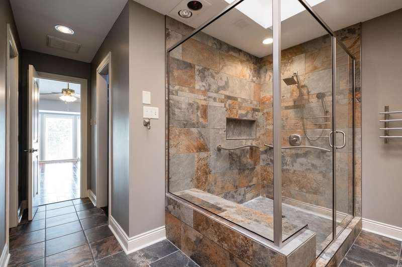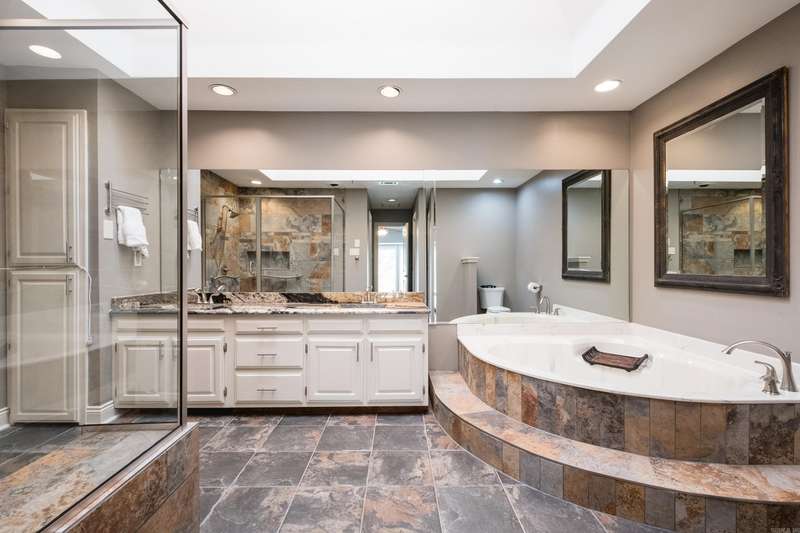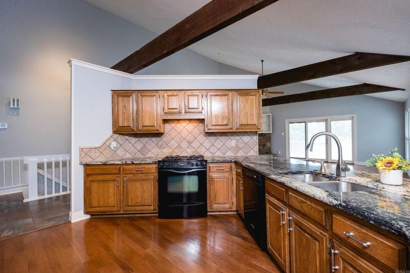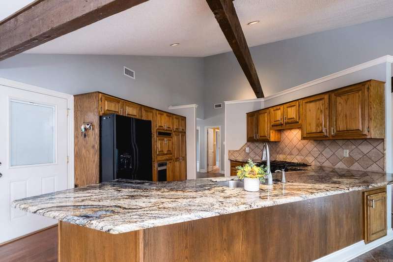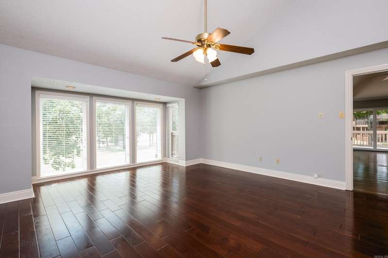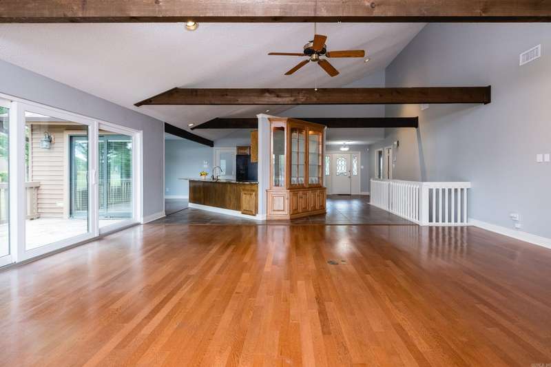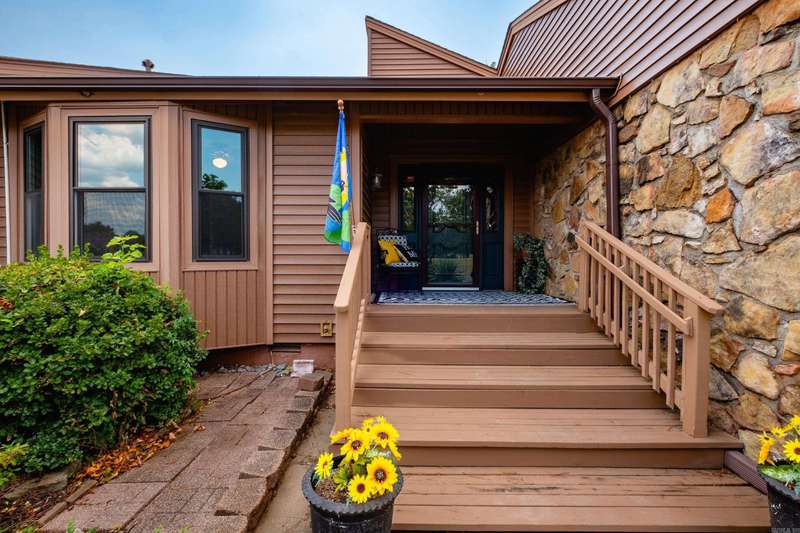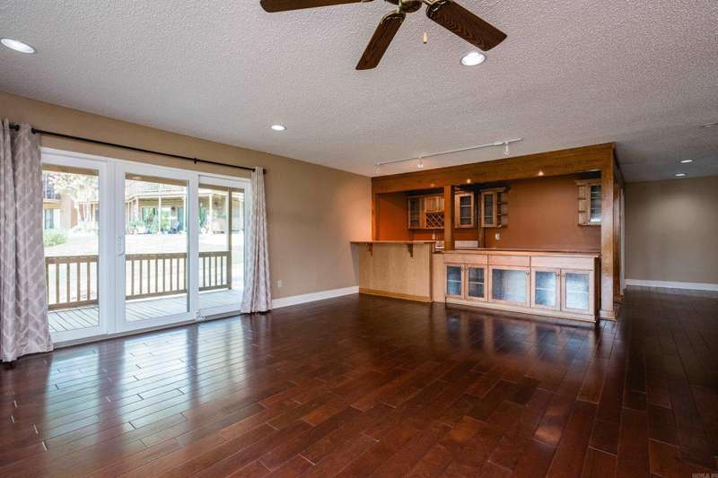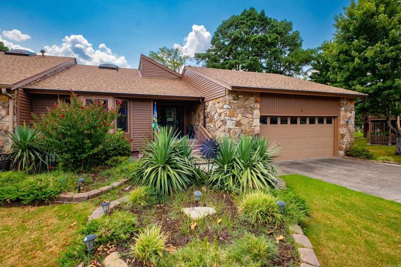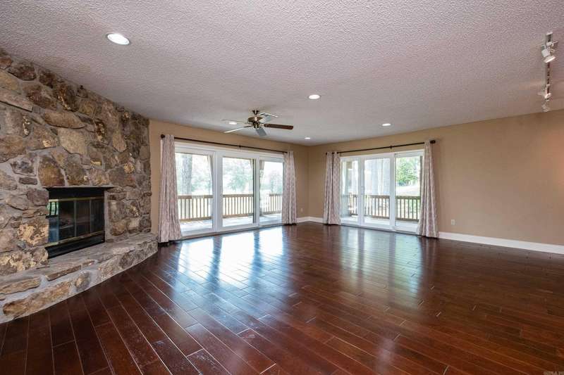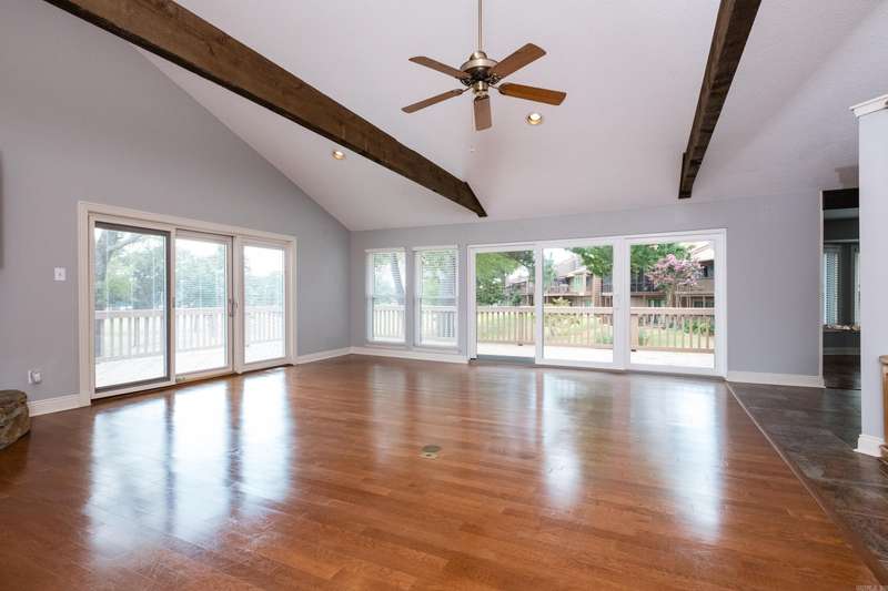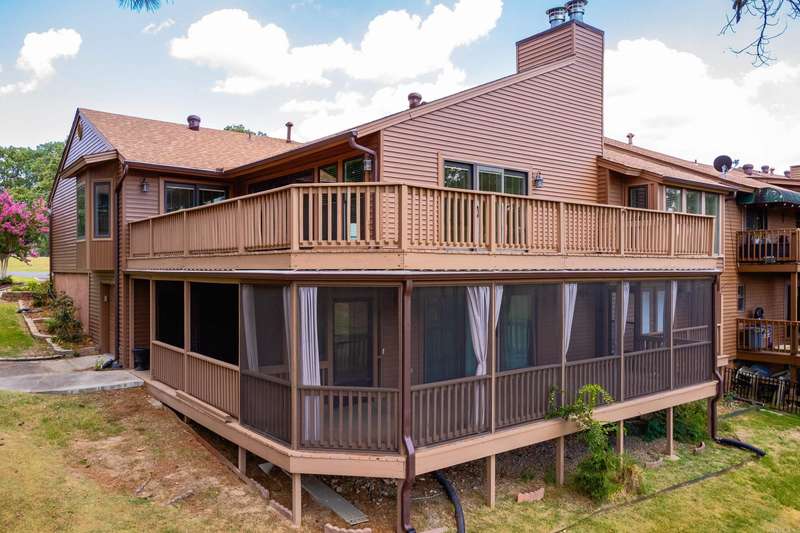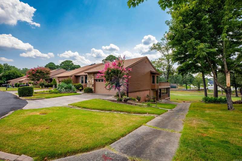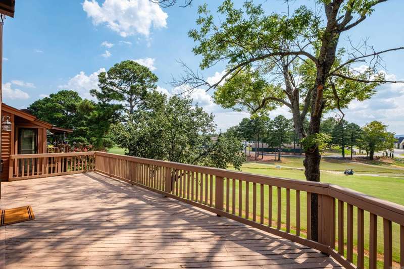 Stunning property on Maumelle Country Club golf course! This home is located on the 9th fairway & a delightful retreat for anyone! Beautiful views (front & back) & many places to relax or entertain. Interior boasts high/vaulted ceilings w/ exposed beams & so much natural light through the updated windows & sliding doors, leading you out to the wrap around decks & screened porches. On the main level is a spacious kitchen w/ granite counters, big living with fireplace & hardwoods, primary suite has hardwoods & views of the course plus a bright bathroom includes huge walk-in tiled shower, double vanity, soaking tub & two closets. At the front of the home is a generously sized guest suite w/ bath. Downstairs has a game/bonus room w/ a 2nd fireplace & access to lower decks, big wet bar area, 2 guest bedrooms share a bathroom & the laundry room leads out to the heated/cooled golf cart garage or workshop. Under house storage galore! **Roof & Leafguard Gutters recently replaced.