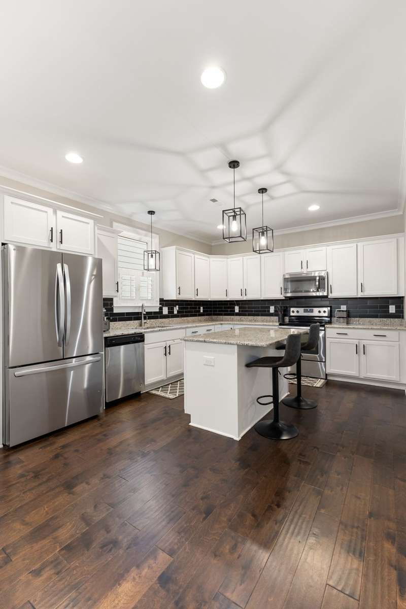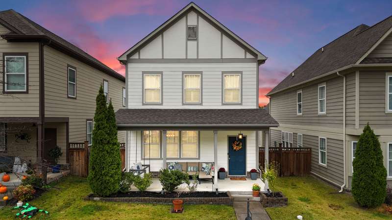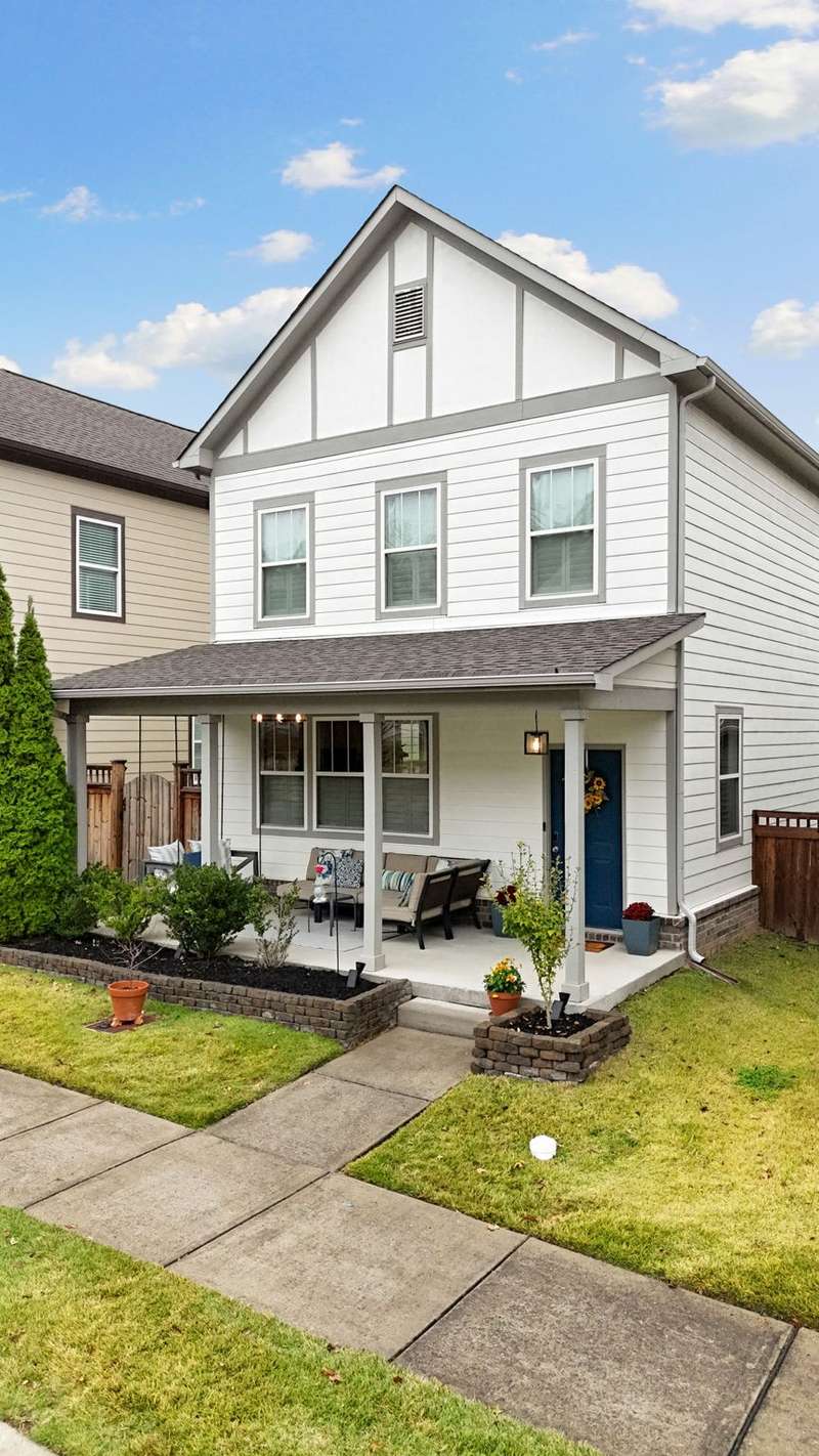 Welcome to Cambridge Park, a highly desirable neighborhood with only 77 homes! This delightful home features a thoughtfully designed layout with ample space. Before you step inside, take a moment to relax on the covered front porch equipped with a built-in swing. The main floor features gorgeous hardwood flooring that flows into a spacious living room, which connects effortlessly to the kitchen, making it ideal for hosting gatherings. The kitchen comes with upgraded cabinets, granite countertops, a tile backsplash, an island, stainless steel appliances, and a charming breakfast nook. There's also a sunroom that can function as a playroom or office, providing access to the backyard and a door that leads to the two-car rear-entry garage. For your convenience, a half bathroom and laundry is located on the main level. This stunning home has been enhanced with built-in plantation shutters, new lighting fixtures throughout, crown molding, and ample storage in closets with built-in shelving. Upstairs, you'll discover the primary suite, which includes a spacious walk-in closet, a tiled shower, and a double vanity. This level also features two additional bedrooms and a full bathroom. Step outside to the patio and enjoy the extended area with a sitting space, grilling area, and plenty of green space, perfect for relaxation and privacy within your fenced yard. The community offers beautiful green spaces, ample open areas, and sidewalks. The charming Cambridge Park community is conveniently situated just a 10-15 minute drive from Brentwood, Cane Ridge Park, and Lenox Village, with easy access to the interstate and nearby shopping and dining options. Don't miss the opportunity to make this wonderful place your home.