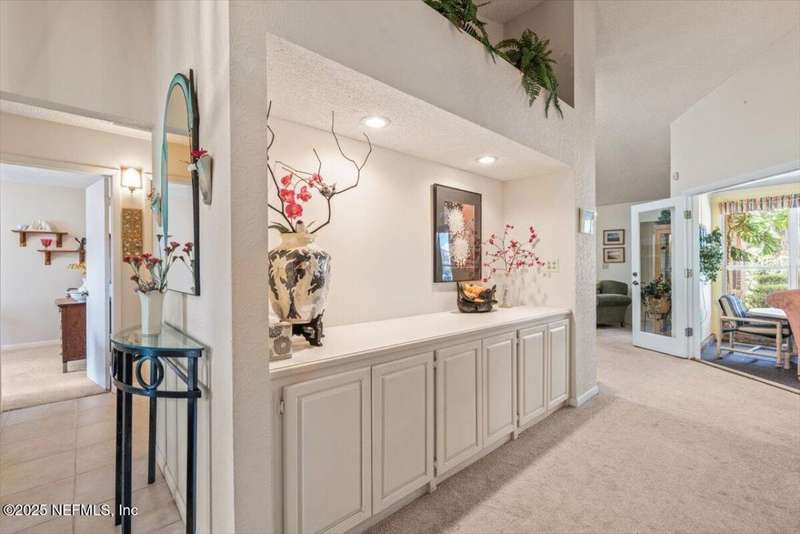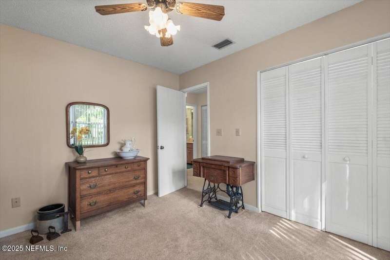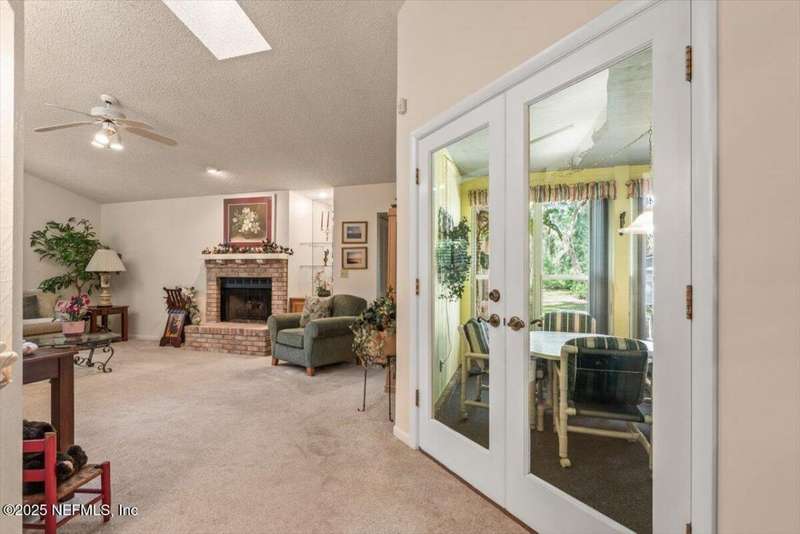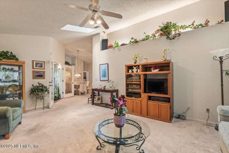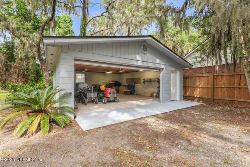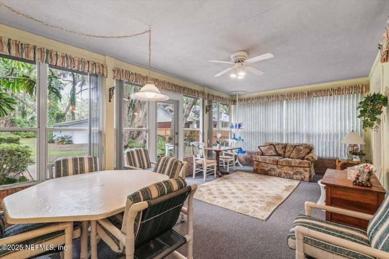 NEW PRICE ADJUSTMENT! Motivated Seller in THE CAPE subdivision. This beautifully maintained MOVE-IN READY home sits on a serene, expansive lot & has it all including an ADDITIONAL concrete block detached garage offering EXTRA space for toys, parking, storage, hobbies or transform it into the perfect mother-in-law suite! Tucked away in a desirable golf-cart friendly neighborhood-NO MANDATORY HOA, this one-story oasis has everything your family needs from a spacious FLORIDA ROOM overlooking a private, expansive backyard retreat perfect for pets, kids, relaxing, enjoying a quiet evening, or entertaining friends/family to the split floorplan creating privacy for the master bedroom with an en-suite bathroom plus 2 additional bedrooms. BRAND NEW A/C ductwork into the Florida Room allows for year-round enjoyment. Rest easy knowing major updates have been taken care of including a NEW ROOF & skylights (2021), garage door (2023), refrigerator, dishwasher & hot water heater in 2025.