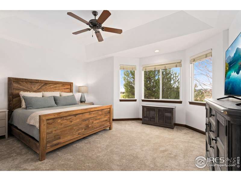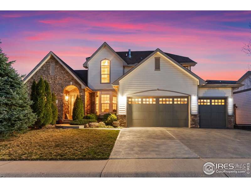 This Highland Meadows gem in Windsor is a total hole-in-one! Backing to the 17th fairway with jaw-dropping mountain views, this 2-story stunner with fresh interior paint and brand new carpet is where luxury meets leisure. The main floor boasts a spacious primary suite, an office with elegant French doors, and vaulted ceilings that let the sunshine pour in through massive windows with glorious southern exposure. Upstairs, you'll find three roomy bedrooms plus a loft with prime views of the green - perfect for spying on your future golf buddies. The garden-level finished basement is an entertainer's dream, featuring a sleek wet bar, a pool table that's staying put (game on!), and a versatile rec room/game room ideal for wine tasting or unwinding. Outside, the fun continues with a covered deck, a brand-new stamped concrete patio, and firepit area. With a spacious 3-car garage for all your gear, this home is teed up and ready for you to move in and start living the good life! Pre-inspected for Buyer's peace of mind.