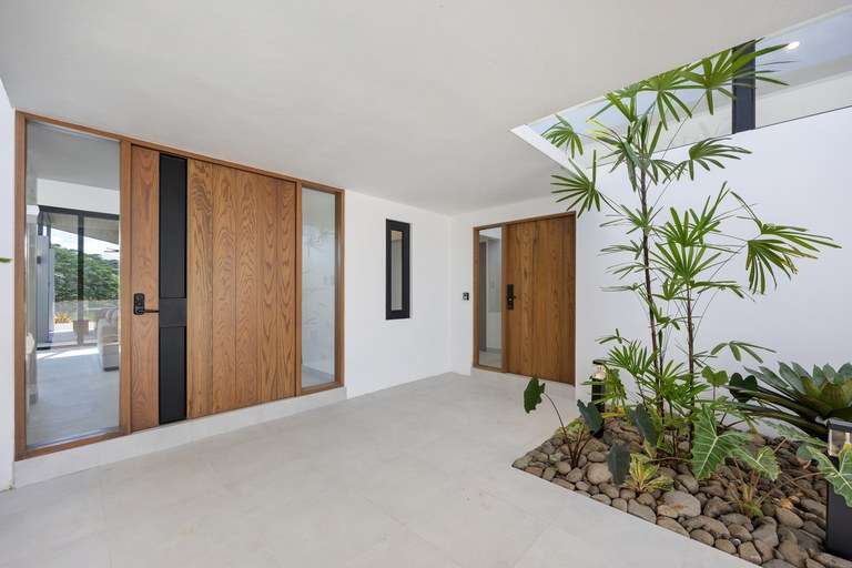 This brand-new Casa Aguasalada is a magnificent opportunity to own a piece of paradise! This luxurious residence is located in front of hole #16 of the renowned Robert Trent Jones II Golf Course at Reserva Conchal in the closest community to the beach. Aguasalada is a stunning 4-bedroom, 5 full bathroom and 2 half bath home that boasts 4769 sq ft of living space on 1321.56m2 of land and offers a modern tropical design with teak accents throughout, providing ample room for entertaining guests and family. The bedrooms are separated in their own wing, ensuring privacy, and the common areas are open and spacious. Each bedroom has its own ensuite bathroom so every guest is happy!