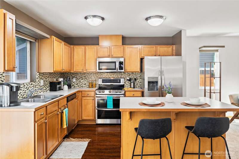 Welcome to Glacier Valley! This beautifully updated townhome offers comfort, style, and convenience. Inside, you’ll find a cozy living room featuring brand new flooring, plush carpet, and modern appliances that make everyday living a breeze. Upstairs boasts two spacious primary suites, each with its own full bathroom, and a generously sized utility room for added functionality. Step outside into your private backyard, complete with new turf and fencing—perfect for relaxing or entertaining. Ideally located near scenic parks and local trails, this home is also in the highly sought-after Tahoma School District. Don’t miss this move-in-ready gem in a welcoming community!
