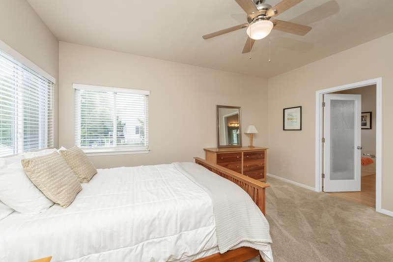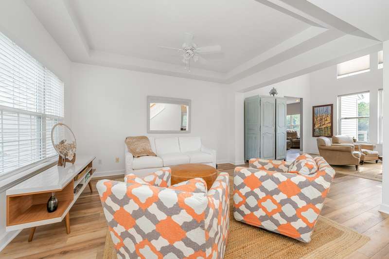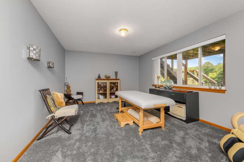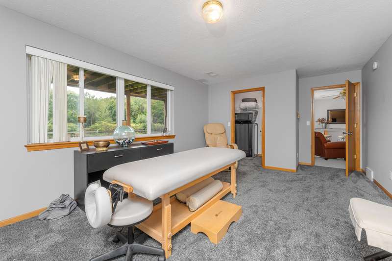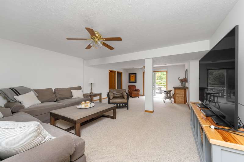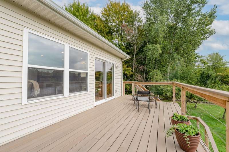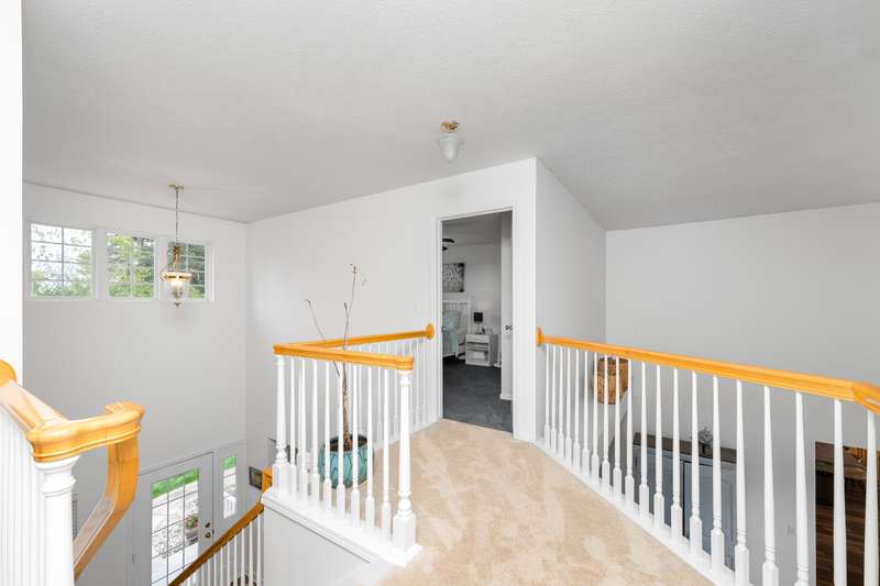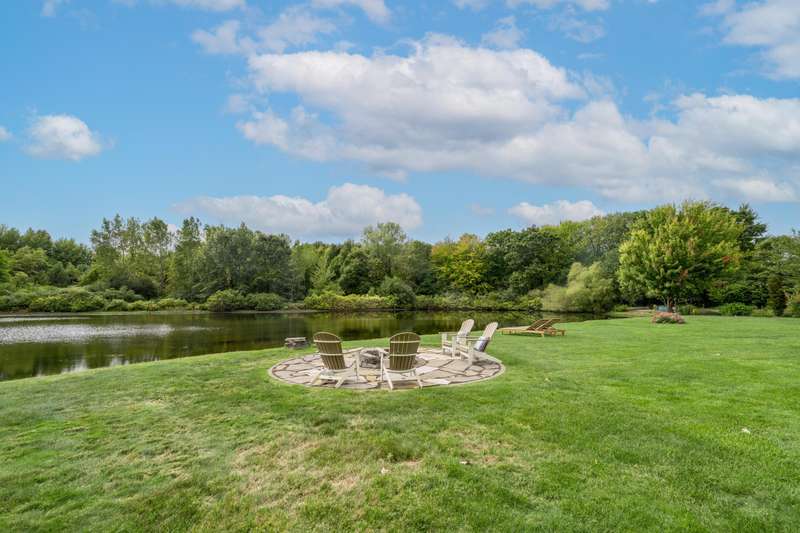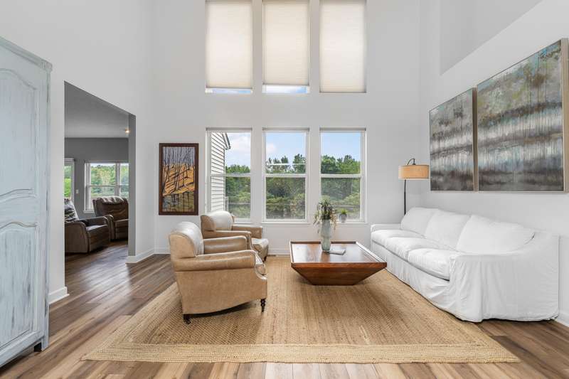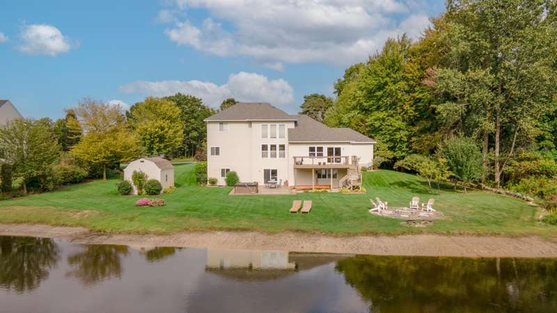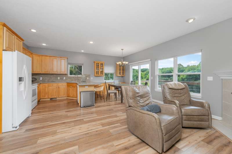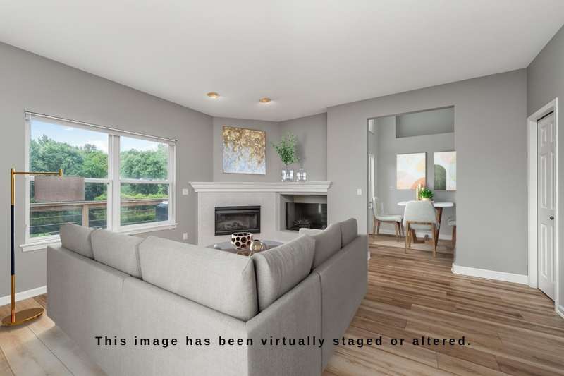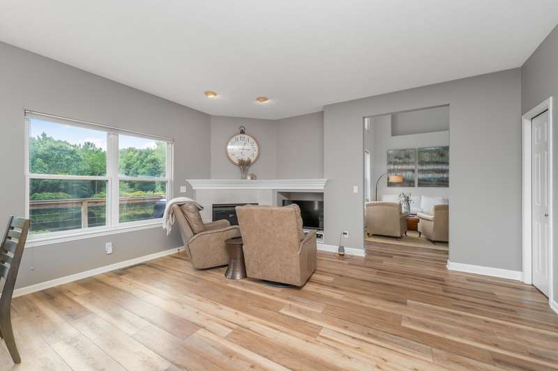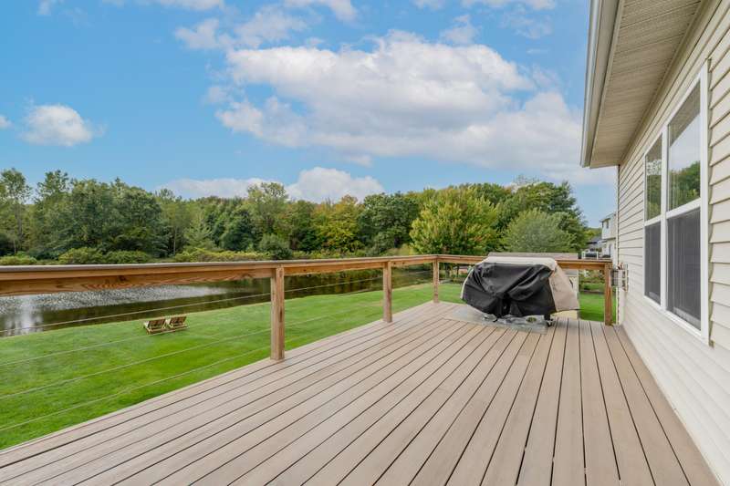 Pristine and fully updated, this spacious 5-bedroom, 2.5-bath residence is a must-see. The living room features soaring ceilings that create an airy, modern atmosphere. Enjoy the private, quiet pond frontage, fed by a natural spring and ideal for kayaking and stargazing. The backyard is an entertainer's paradise: step onto the low-maintenance new composite deck and transition to the lower level walkout, where you'll find a new flagstone fire pit and a relaxing new 6-person hot tub. Association wooded trails are stunning with the seasons and are accessible within 200 feet. Peace of mind is provided by extensive recent upgrades: new roof, furnace, A/C, and water heater (all replaced in the last 2 years). Inside, the kitchen has a new countertop and the convenience of an oversized 3-car garage. Also new premium flooring. Water pond background is of association nature foliage, which will never be built on. Recent price reduction for update to Primary Bath and add a lower level bath.