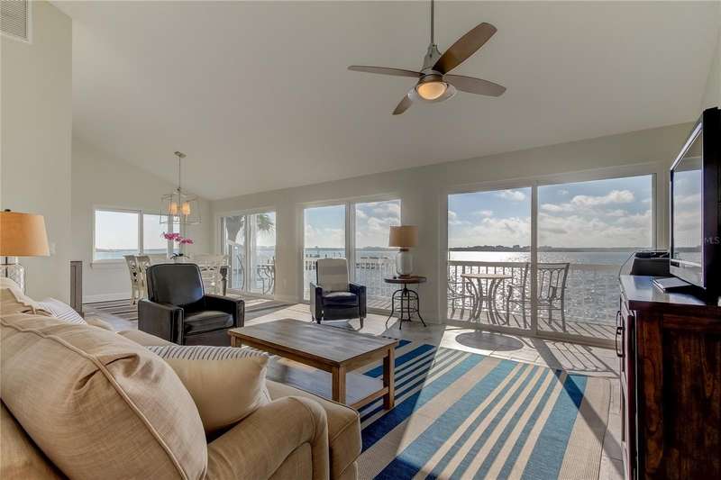 Experience coastal living at its finest in this updated, fully furnished 2BR/2BA condo featuring vaulted ceilings and intracoastal water views from the moment you walk in. The kitchen and bathrooms boast quartz countertops. Both spacious bedrooms include built-in closets and the home offers a rare walk-in pantry plus a convenient attic utility access. Located in a pet-friendly community, this property is your personal slice of paradise. Enjoy resort-style outdoor amenities including a waterfront pool with waterfall, gas grills and a stylish outdoor bar area with ample seating- perfect for entertaining or relaxing by the water. With an easy commute to Tampa and St.Pete, you'll have the best of both worlds: peaceful waterfront living with quick access to vibrant city life. Turn the key and embrace the Sand Key Lifestyle! UPDATED, FURNISHED AND READY FOR YOU TO ENJOY!