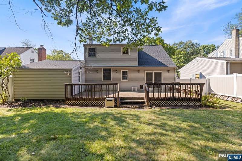 Welcome to Waldwick! Located on the coveted west side of town, sits this classic cape colonial on an idyllic and friendly street. The open living room and dining room gleam with fantastic natural light through big double and bay windows. A 1st floor bedroom with sliding glass doors opens to a deck inviting you to enjoy the fresh air outside. An undeveloped, landlocked lot behind Lyon Rd and Lindbergh Ave provides additional privacy. A comfortable kitchen and powder room round out the first floor. Upstairs, you will find an open landing leading to 3 bedrooms and an updated full bath. Enjoy brand new laundry appliances in a full and versatile unfinished basement with ample storage boasting the opportunity to be transformed into a rec room, gym, office, etc for added living space. Featuring hardwood floors throughout and freshly painted, this home also offers a 1-car garage, central air, a new roof, and a newly vinyl fenced-in backyard. Don't miss this charmer!