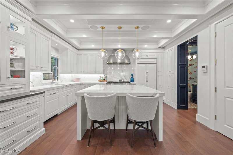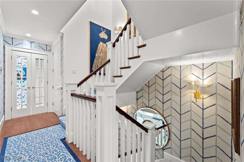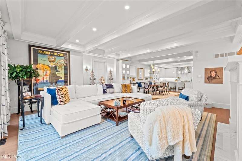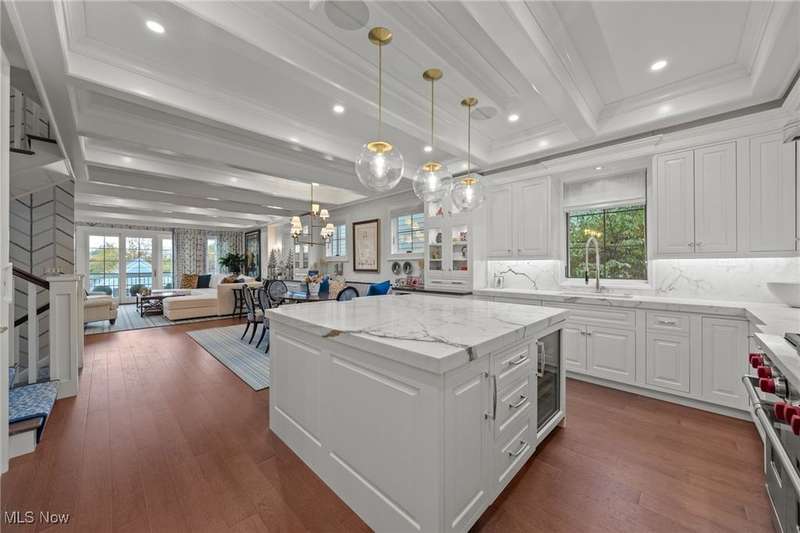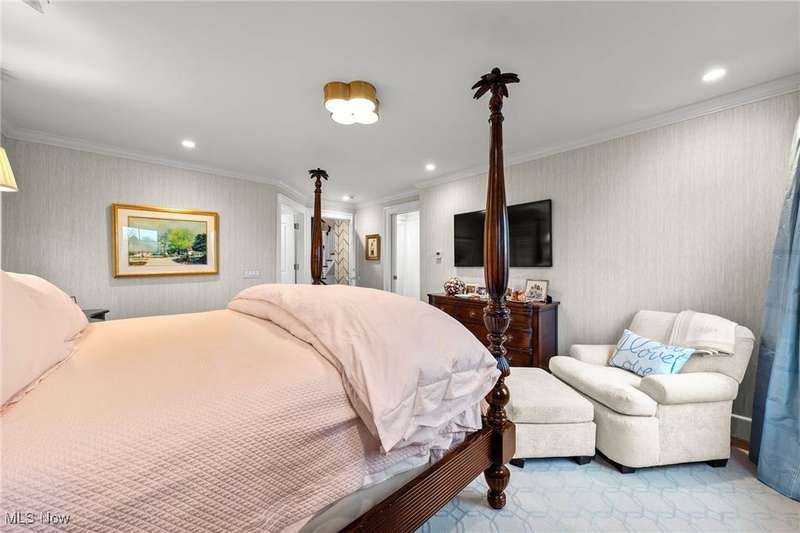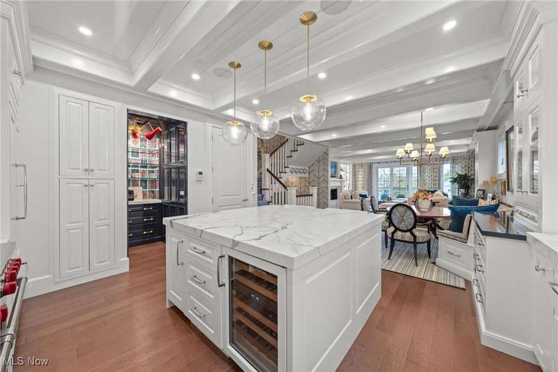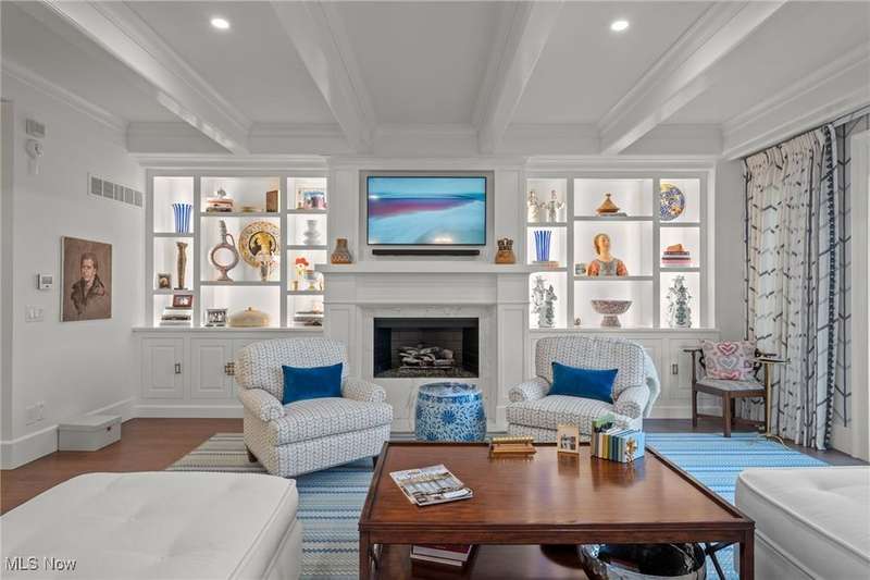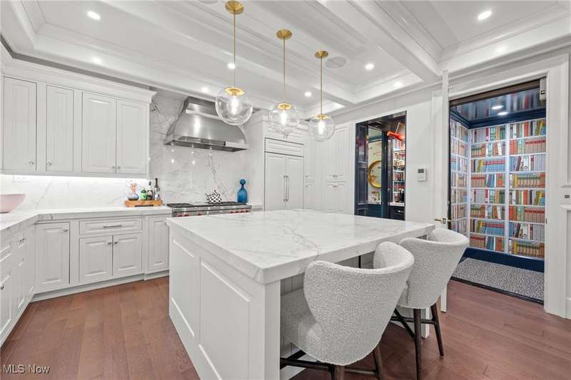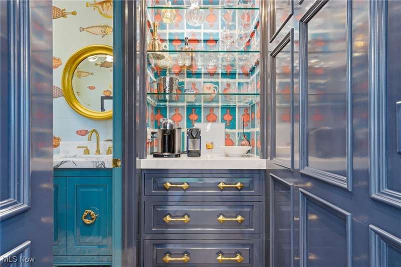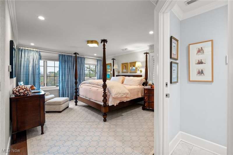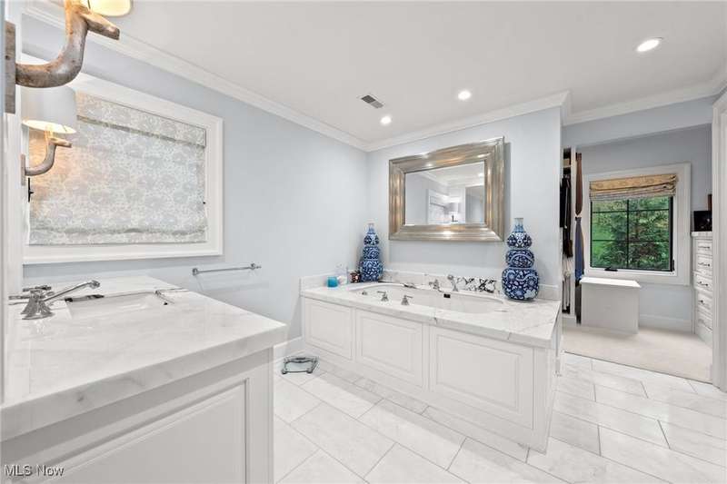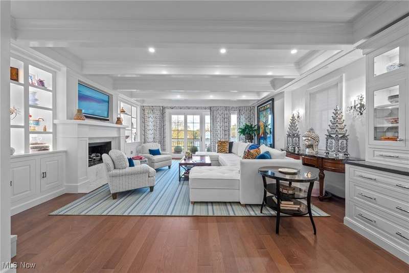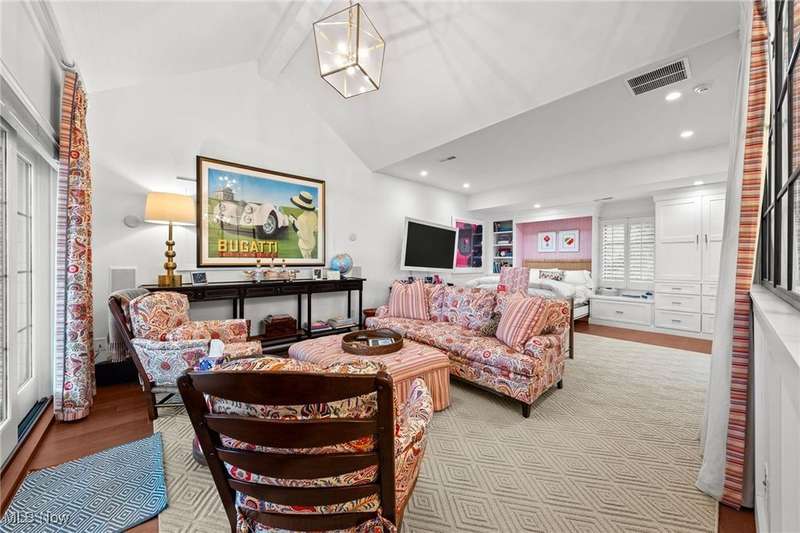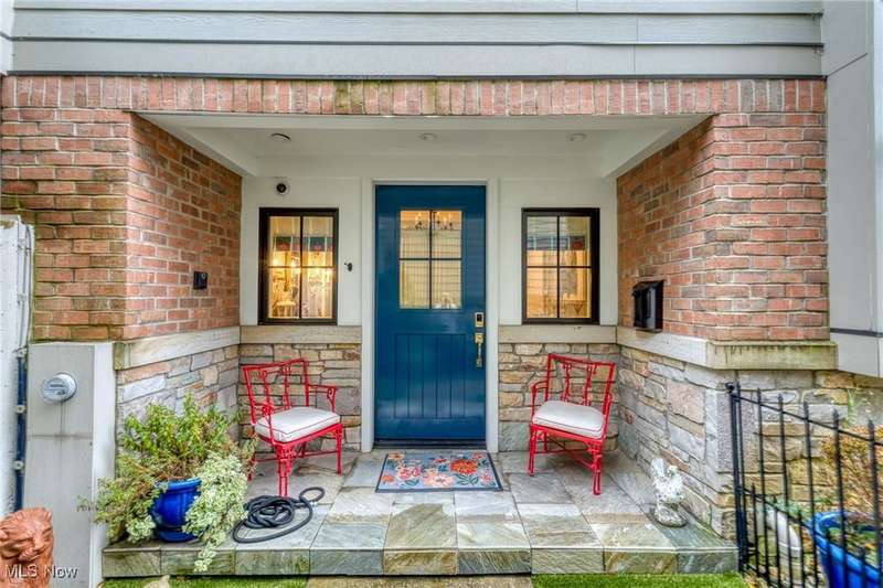 Located in the heart of Chagrin Falls, this extraordinary 4 level residence has been renovated and decorated to utter perfection by the current owner. No expense was spared and no detail was overlooked throughout. A charming and beautifully landscaped courtyard welcomes one into the foyer through a custom front door. One will immediately notice the exquisite decor, highest end finishes, and the meticulous attention to detail. On this entry level there is an elevator with access to all 4 floors, a home gym with rubber floor, and a grand staircase with a custom runner. The main level of this home is an entertainer's dream and features the most extraordinarily designed dream kitchen. Here you will find the highest level of finishes including custom inset cabinets, a huge center-island, Calcutta Gold marble countertops, professional stainless-steel appliances, a wine cooler, ice maker, and spectacular decorative hood. Off of the kitchen is a beautiful bar area which is perfect for entertaining. The main living area includes a fabulous dining room with custom banquette which opens into the main great room. Here you will find a magnificent raised hearth which is flanked by custom built-ins and floor to ceiling windows which overlook the village. The owner's suite in this unit occupies an entire floor and is the definition of "Luxury!" The bedroom is a quiet retreat, the marble bathroom is second to none (steam shower, dual vanities, heated floor, heated towel rack, Porto Romano sconces, and jetted tub), two walk-in dressing rooms, and even a private laundry room. The top level is a retreat for guests with a bedroom area, media room, spectacular bathroom, and access to the outdoor veranda. This beautiful, covered terrace has a stone fireplace and built-in bar area with sink. This one-of-a-kind residence is truly a showplace.
