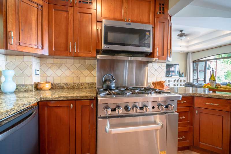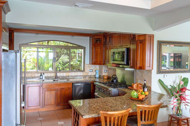 * Traditional Costa Rican décor with Saltillo tile floors, vibrant local art, and dark wood accents