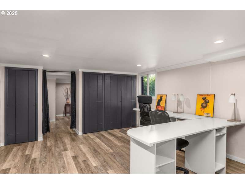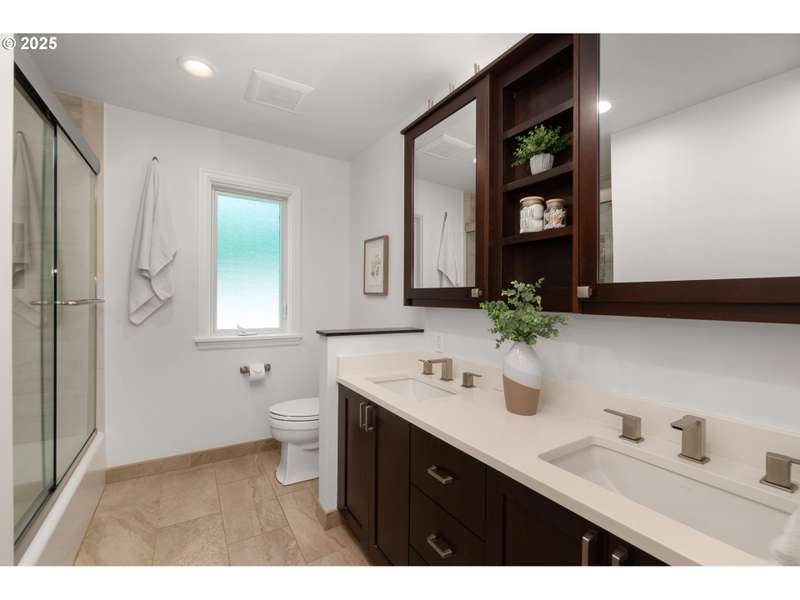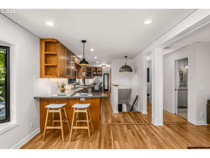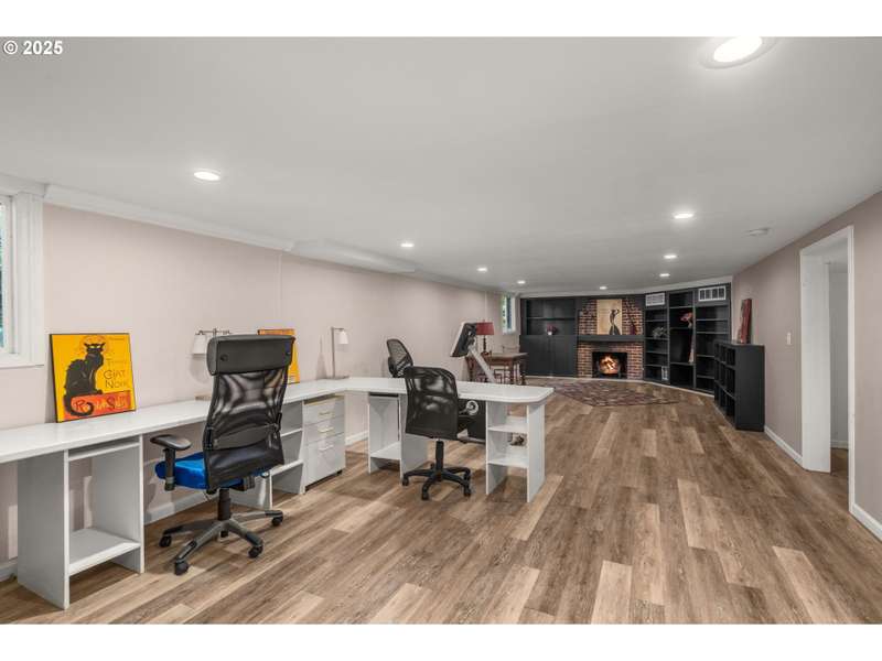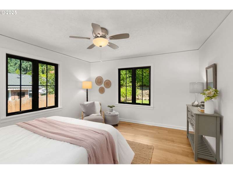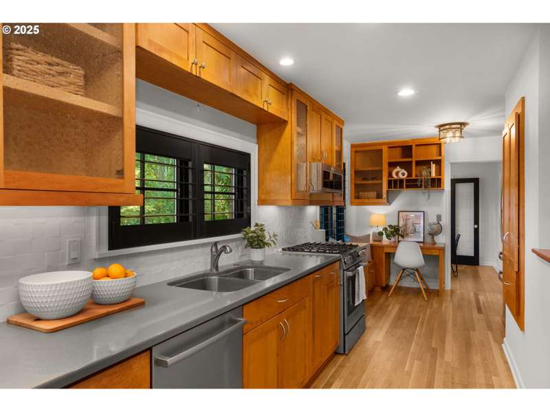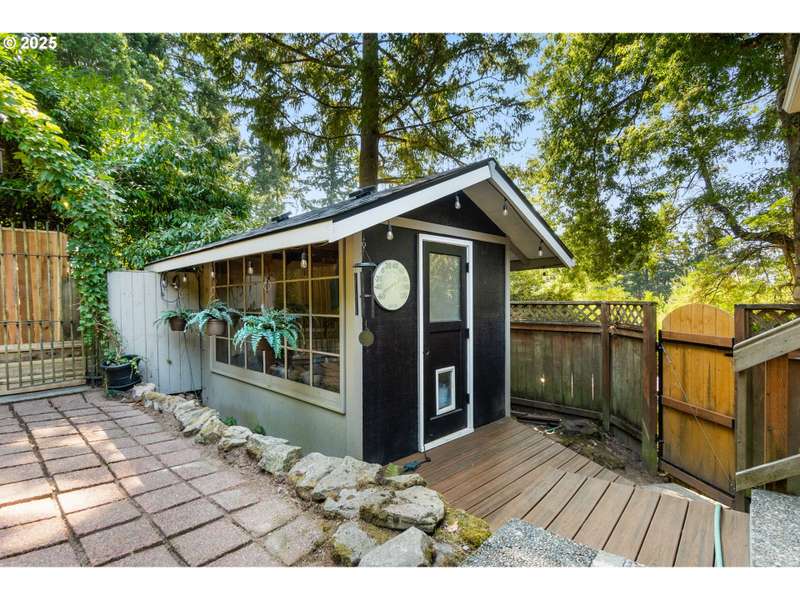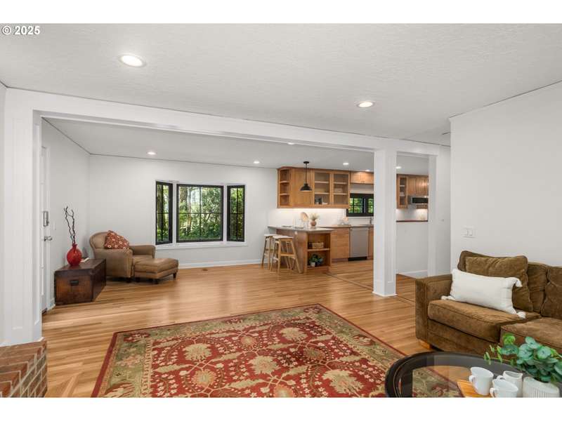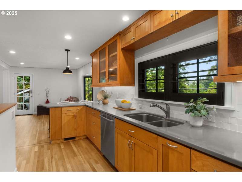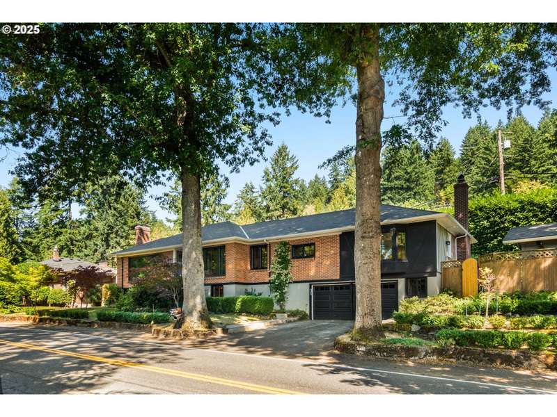Discover this beautifully updated ranch in a prime SW Portland location - adjacent to the West Hills and minutes to Hillsdale. Blending timeless character with modern upgrades, the home features new windows with sleek black shutters, a new roof, remodeled basement bathroom, fresh paint, refinished hardwoods, stylish backsplash, stainless steel appliances, and refreshed landscaping. Enjoy versatile living with a full finished basement and three fireplaces that bring warmth to the spacious floor plan. Step outside to a private, tree-lined backyard with patio - perfect for entertaining or relaxing in nature. The attached double garage adds convenience, while the elevated lot provides privacy and serenity away from Sunset Boulevard. Graceful, welcoming, and surrounded by the beauty of Southwest Portland, this Hillsdale retreat is a true hidden gem.