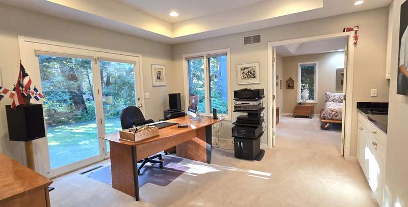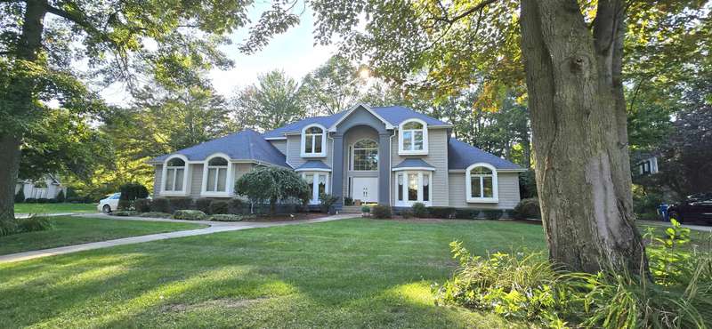 Step inside this well cared for 3314 sq ft, two story home that has blended elements of both traditional and contemporary architectural design! As you enter this home, the second story balcony greets you and provides stunning views of the 2 story foyer and the cathedral ceiling in the great room. This open floor plan are include the formal living room, dining room, great room, open staircase, and balcony. The kitchen was designed with the home chef in mind with an island cooking area, double ovens, great storage, and a breakfast nook. Enjoy a true retreat in the main floor, primary bedroom suite that includes 2 walk-in closets, a 5 piece bath that has stunning glass and black tile, jet tub, walk-in shower, double vanity, and a private entrance into the home office. The office has 2 sets of double doors that open into both the bedroom and great room, a wet bar and bay windows for peaceful views of the backyard. The 2nd story has a bedroom with a private ensuite bath and 2 bedrooms that share a jack & jill bathroom. The finished lower level includes a 33'x26' family room with newer vinyl plank flooring, daylight windows, a bar area, 5th bedroom that has a private entrance to the full basement bath. Additional highlights include a main floor laundry, a side-load 3 car garage, a private backyard with both a deck and brick paver patio. This home is conveniently located with in walking distance to 2 top rated schools: Woodcrest Elementary and H.H. Dow High School. Schedule your private showing today!