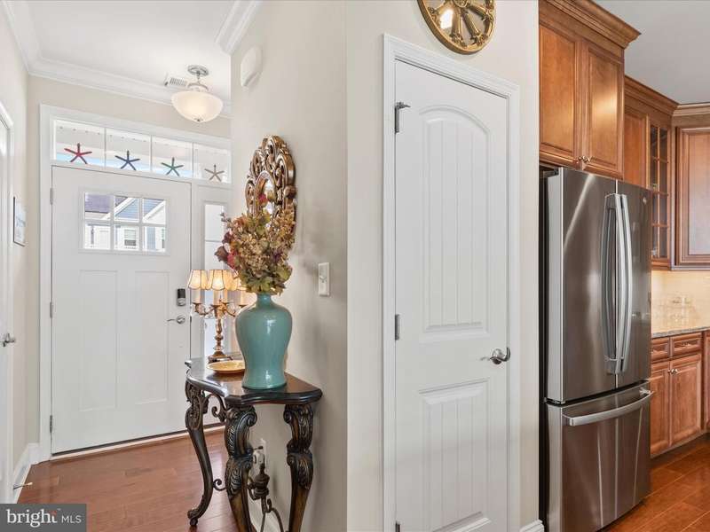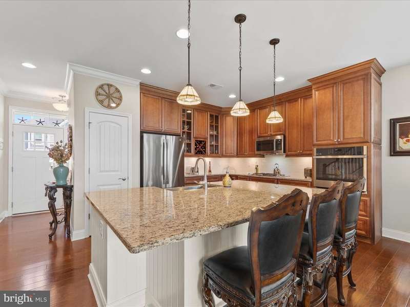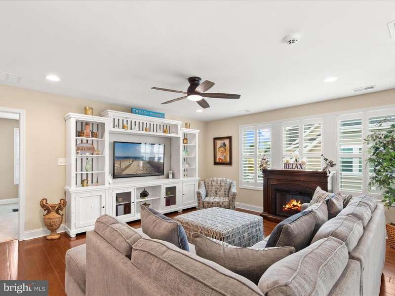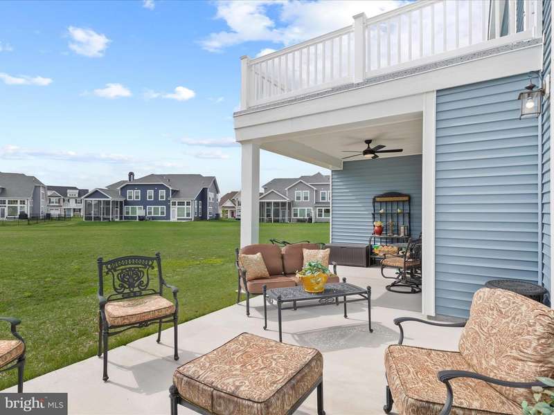 Like-new and rich in custom upgrades, this exceptional sun-filled Schell Brothers 4-bedroom, 2.5-bath home in the highly sought-after community of Peninsula Lakes offers a perfect blend of luxury, comfort, and style-and it shows like a model. Completed in 2024 with meticulous attention to detail, every inch of this home features high-end finishes and thoughtful enhancements. Ideally situated on a premium lot backing to open space, enjoy added privacy and tranquil views. Curb appeal abounds with attractive landscaping, a welcoming covered front porch, board and batten shutters, and a decorative metal accent roof above the garage. Step inside through a craftsman-style 2-panel door with a transom and decorative ledge, and you're greeted by engineered 5-inch hardwood flooring flowing through much of the main level. A designer paint palette and Hunter Douglas plantation shutters add warmth and sophistication, while a rare 4-foot extension across most of the home creates open, airy rooms designed for everyday living and easy entertaining. Interior 2-panel beaded arch doors complement the coastal style. At the heart of the home, the gourmet kitchen is a chef's dream and a visual showpiece. A large island with granite countertops, soft-close drawers, electric, and wainscoting is surrounded by 42-inch soft-close solid wood cabinets with trim, under-cabinet lighting, classic subway tile backsplash, upgraded GE Profile stainless steel appliances, gas cooktop, wall oven, Kohler Vault sink, and pantry. Tiffany-style pendant lights add a final, eye-catching touch. The adjacent dining area flows into a bright living room with vaulted ceiling, ceiling fan, expansive picture windows, and a marble surround gas fireplace-creating a cozy yet elevated space. An atrium door with custom shutter leads to a partially covered and extended rear patio with ceiling fan, gas stub-out for grilling, and serene views-perfect for outdoor entertaining. A rear balcony adds charm to the elevation. The main-level primary suite offers a peaceful retreat with tray ceiling, ceiling fan, two walk-in closets, and spa-style ensuite bath featuring a dual-sink solid wood vanity, custom tile flooring, and a luxurious tiled shower with bench seating, frameless glass door, and grab bar. Also on the main level: a stylish powder room and custom laundry room with washer, gas dryer, solid wood cabinetry, and upgraded tile flooring. Upstairs, quality finishes continue with oak tread stairs, painted risers, and white square balusters with oak handrail. The hardwood-floored loft with ceiling fan overlooks the main level and provides flexible space for work or relaxation. Three spacious bedrooms, each with generous closet storage, share a full bath with tub, shower doors, and linen closet. One bedroom boasts a private balcony-perfect for morning coffee or evening stargazing. Recessed lighting is found throughout the home. A full-size, floored attic on the third level offers abundant storage and potential future living space. Additional upgrades include an April Aire humidifier, tankless Rinnai water heater, Ring camera system, smart door locks and thermostat, and owner-controlled irrigation system. You'll love this 2,500+ square foot high-performance home with smart tech throughout. Located in the award-winning Peninsula Lakes community, residents enjoy unmatched resort-style amenities: a stunning clubhouse with lounge, bar, fitness center, yoga studio, and billiards room; a sparkling outdoor pool with lazy river, lap lanes, and splash pad; tennis and pickleball courts; bocce, horseshoes, dog parks, 11 scenic lakes, walking trails, and more. Just minutes from Indian River Bay and a short 13-mile drive to the Atlantic beaches, this is your opportunity to experience the best of coastal living. Schedule your private tour today!