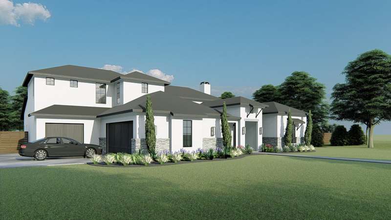 Beautiful Modern Transitional home on large lot in The Vines of Haslet built by PentaVia. Open floor plan, wide plank hardwood floors, gorgeous lighting, premium quartz countertops, a soft color palette. Gourmet kitchen with GE Cafe SS appliances, gas cooktop, center island, elegant white silage tile backsplash, and custom cabinetry. Family room features wood beamed ceiling and spectacular fireplace with floor to ceiling stone surround. Primary suite is spacious and offers a spa like bath, custom mirrors, large soaking tub and separate shower. An additional 4 bedrooms with 4.1 baths are positioned throughout the home to give amazing privacy. Spacious game room with full kitchen is located just off the kitchen area and is perfect for showing the big game or movie night with the family. Outdoor covered patio is large and offers a built in gas grill. Large yard can easily accommodate a pool with plenty of room for a game of soccer or a play set. Walking trails, a playground, a pavilion, and a catch and release pond. Completion late late July 2025.