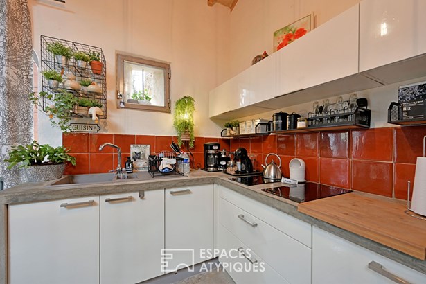 In the center of St Laurent d'Aigouze, this former renovated workshop offers a surface area of 51 sqm spread over two levels.