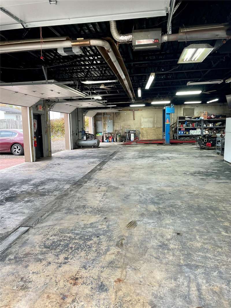 Spacious 2,800 sq. ft. commercial building zoned C3 – Mixed Use, offering endless possibilities for business or personal use. Features include 3 newer side overhead doors and a brand new front overhead door with opener & key pad, two updated bathrooms, a floor lift, air compressor, 10-foot ceilings, floor drains and updated electrical throughout with 3 phase power. The property also offers a private, fenced lot—perfect for storage, parking, or expansion.