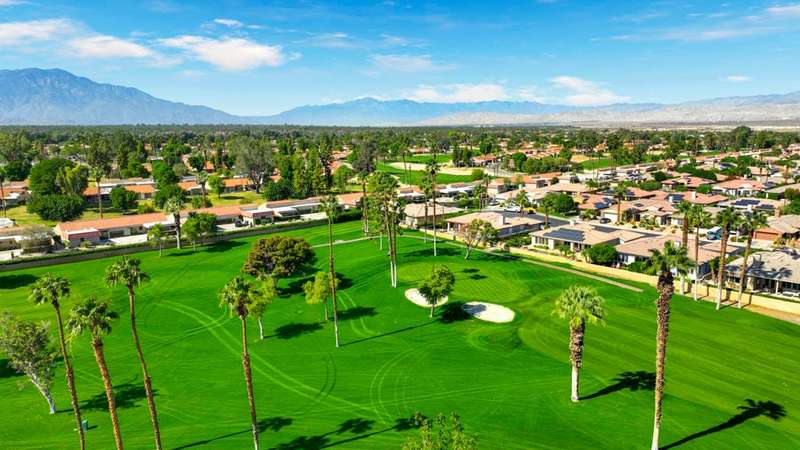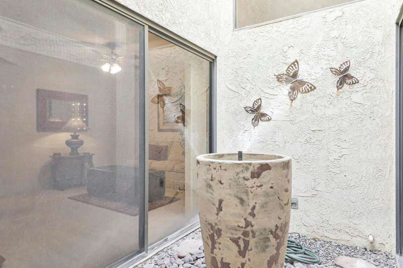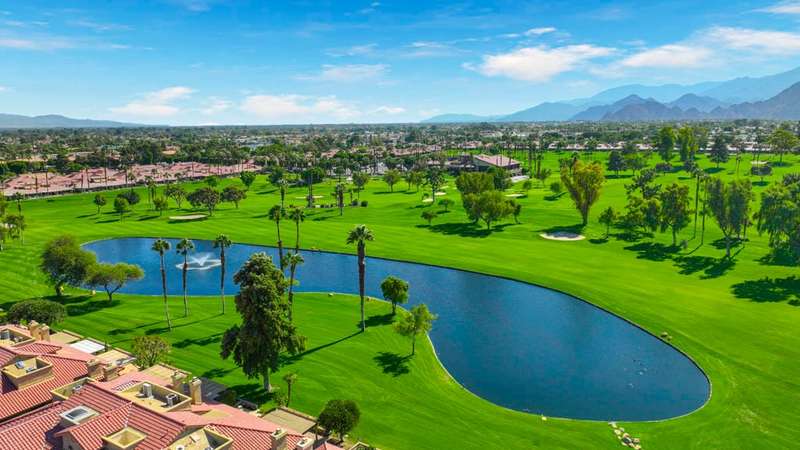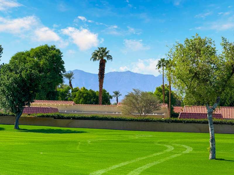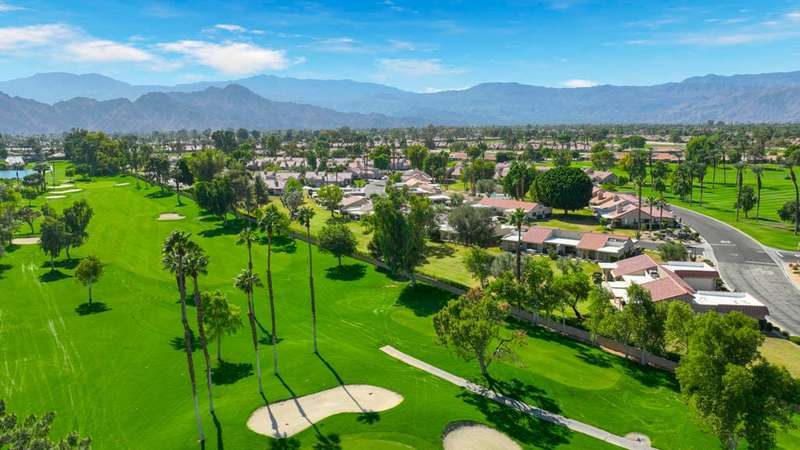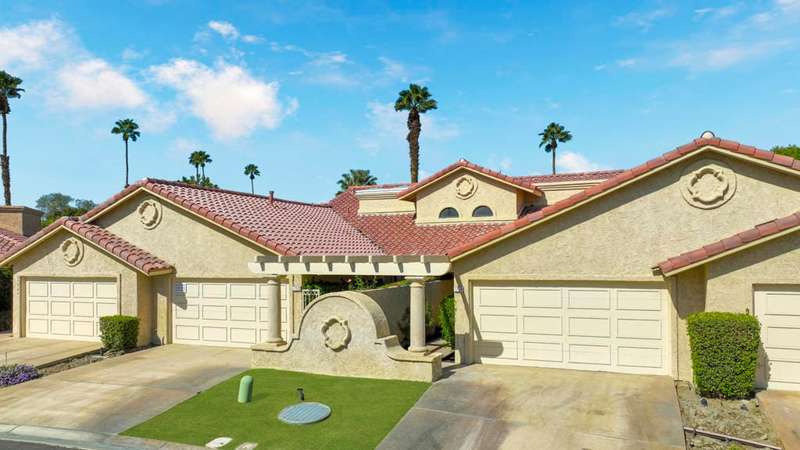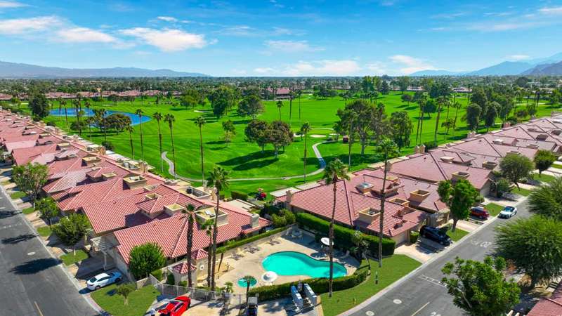 Experience the ultimate in desert living with this beautifully appointed 2 story 1,808 sq. ft. Riviera, located in the prestigious Woodhaven Country Club. This fully furnished condominium features two spacious bedrooms, three full bathrooms, and a versatile den that can easily serve as a third bedroom, home office, or media room to suit your needs. The recently updated HVAC system and newer vertical blinds throughout will give you piece of mind that you'll be comfortable in both winter and summer. The spacious floor plan is filled with natural light, creating a bright and welcoming atmosphere perfect for entertaining or relaxing. Since this home is Located on an elevated lot, it offers sweeping views of the 13th fairway, green and San Jacinto mountains; the sunsets are spectacular!!! Located in one of the quietest areas of the community, this home provides all of the tranquility and privacy you'll need. It doesn't stop there, the community offers 4 pools which 1 is located across from this home, a beautifully maintained 18-hole Par 70 regulation course, newly resurfaced 7 tennis courts and 4 pickleball courts, fitness facility, clubhouse with a full restaurant and lounge, ball room, a variety of programs and events along with special membership golf rates for owners. If you want to sharpen your golf, tennis or pickleball skills, Woodhaven CC has a professional PGA and USTA certified instructors waiting to help. Woodhaven is nestled in the heart of Palm Desert; and ideally located just one mile from the world-renowned Indian Wells Tennis Garden. Easy access to the vibrant Downtown La Quinta, where you'll find charming boutiques, gourmet restaurants, weekly farmers markets, and seasonal art fairs and minutes away from the upscale shopping and dining district of El Paseo. Whether you're seeking cultural experiences, outdoor recreation, or luxury amenities, this location places you at the center of it all.Don't pass up this amazing opportunity to own the best priced unit in Woodhaven.