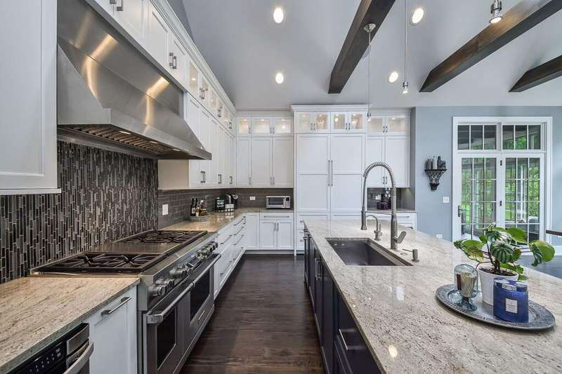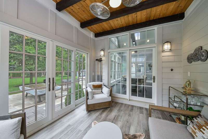 Experience elevated living in this masterfully crafted north Naperville estate, positioned on a beautifully landscaped .67-acre lot just minutes to Downtown Naperville, the train, and highways. Built and designed by award-winning Siena Custom Home Builders and CVG Architects, this one-of-a-kind residence captures the essence of California Casual elegance blended with timeless Nantucket charm. The distinctively curated property has over 5000 SF of living space across the Main House and a Coach House offering five en-suite bedrooms providing flexibility for multigenerational living, guest quarters, or a private retreat. The classic open floor plan of the Main House features soaring ceilings and walls of glass that seamlessly connect the indoor and outdoor living spaces, allowing for expanded living and entertaining areas. Attention to quality and function is visible throughout from the professional Chef's Kitchen featuring Sub Zero, Wolf, Arbor Mills Cabinetry, a 10' island & exposed beamed ceiling, to the Great Room with dual-sided, Italian marble fireplace to the Main Floor Primary Suite with Luxury Bath & private access to the outdoor spa. The executive office has custom built-ins and a separate private entrance. A three-season room, a fully outfitted laundry, and a mud room complete the main floor. Upstairs, three distinctive bedroom suites each offer a unique architectural detail, while a spacious Loft with built-in workspaces creates a second gathering space. The finished lower level is an entertainer's dream, complete with a custom bar, wine room, stage/movie theater, recreation space, and home gym. Under the porte cochere, two heated garages offer space for five cars, and a large circular drive is available for extensive outdoor parking. The Coach House is located above the 2-car garage, has its own private entrance, bedroom/living area, full bath, kitchenette and designated mechanicals. Outdoor living is elevated with custom bluestone patios, a fire pit, a fire table, a tranquil water feature, a pergola with hanging swings, an outdoor kitchen, and a private spa area - all professionally designed and illuminated for ambiance and privacy. Located within the desirable Saybrook Subdivision, an active pool/tennis community, just minutes from shops, restaurants, Metra, and more. Serviced by highly acclaimed Naperville SD203, Beebe Elementary, Jefferson Junior High and Naperville North HS all within close proximity. An exceptional lifestyle offering.