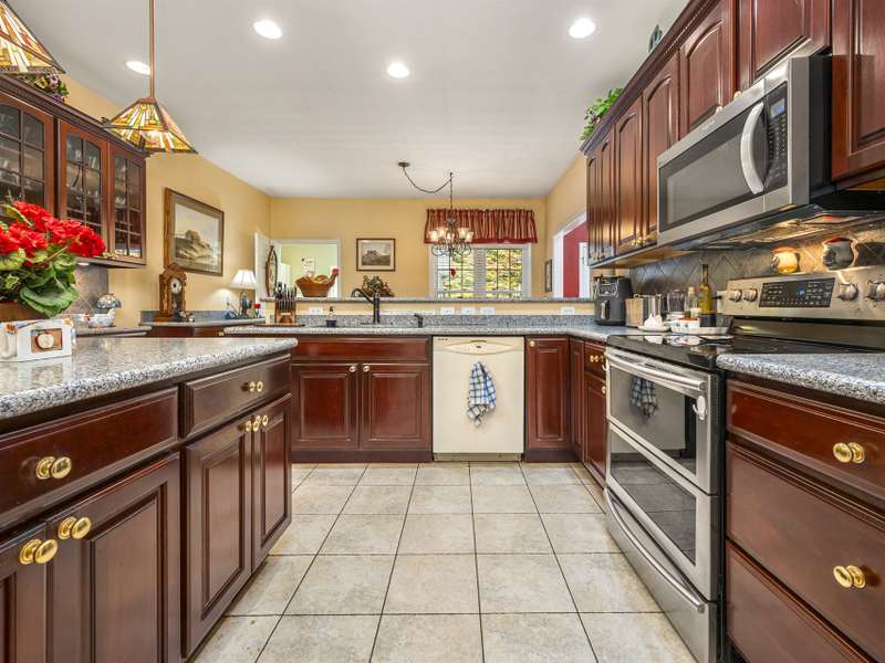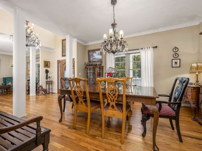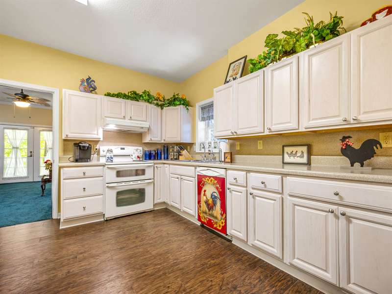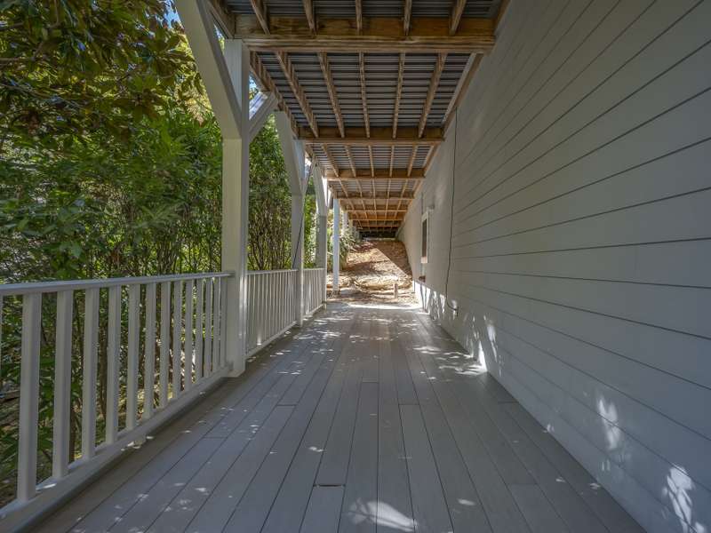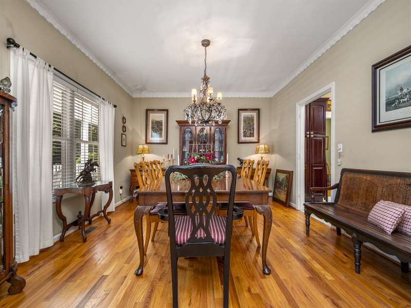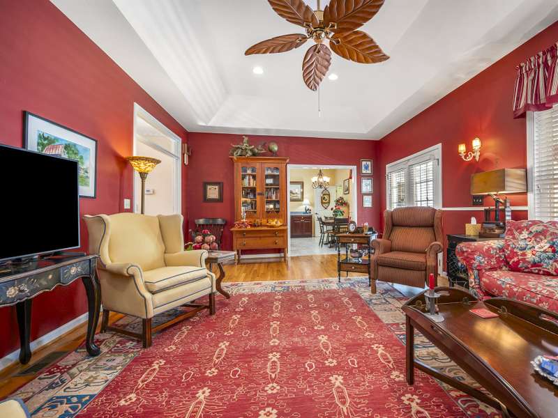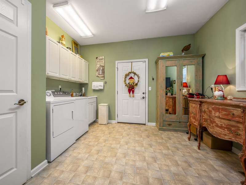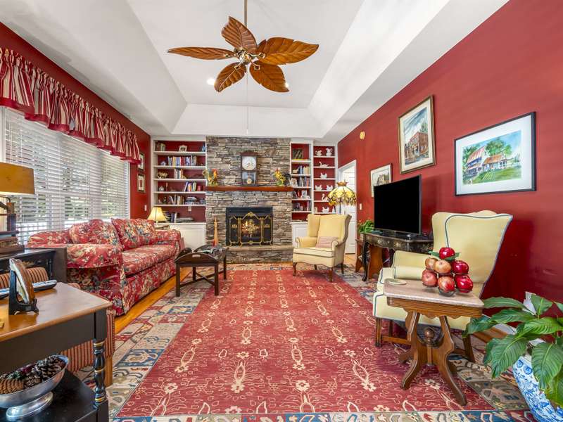A Southern Lady with a Saluda Charm! Charming Southern-style home with wraparound porches on both levels, perfect for relaxing or entertaining. Step into a soaring foyer leading to a cozy sitting room, formal dining, powder room, and a well-appointed kitchen that opens to a great room with trey ceiling, fireplace, and rich oak floors. The main level features split bedrooms, baths, an office, and spacious laundry. The lower level offers a full in-law suite with 2 bedrooms, bath, kitchen, family room, eat-in area, private porch, and 1,050 sq ft of storage. Enjoy a 118 sq ft workshop off the driveway. Nestled on a beautifully landscaped, wooded lot with trails and large rock features, this private retreat is perfect for making lasting memories!