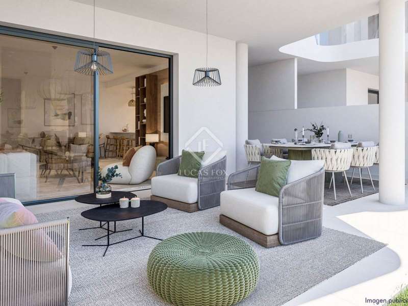 Lucas Fox is pleased to present Lomas del Higuerón 2, an exclusive new build development located in a privileged enclave in Fuengirola, a short distance from the beach on the Costa del Sol. A total of eight buildings are offered at different heights, taking advantage of the slope of the land, so that each of the homes can enjoy exceptional views of the sea. The development puts at your disposal this exclusive penthouse with a large terrace with solarium. The property has a modern design, with colors in neutral and cream tones that maximize the spaciousness and luminosity. The decoration includes noble and natural materials, such as wood and stone. Likewise, it has large floor-to-ceiling windows that allow in abundant natural light. Regarding the layout, it presents a large open-plan room that maximizes space, which integrates the living-dining room with the American-style kitchen with a fabulous central island and access to the terrace. The day area is complemented by a utility room. The night area has a double bedroom , a bathroom to serve the entire property, a second ensuite bedroom and the magnificent main bedroom with its private bathroom, dressing area and access to the terrace. The property is completed with an exclusive terrace with a solarium, with several environments, such as a chill-out area , exterior dining room , hammock area and solarium. The property is not only widely functional, it also stands out for its quality. Its features include lacquered interior doors, built-in wardrobes in the bedrooms, porcelain stoneware floors, a home automation system with smoke detection and a flood sensor controlled via telephone. For greater comfort, it has an underfloor heating system in the bathrooms, with the option of installing it in the rest of the property, hot/cold air conditioning in the living room and bedrooms powered by aerothermics and PVC or aluminum carpentry with Thermoacoustic double glazing with safety glass in areas with risk of impact. The kitchen and bathrooms are fully equipped. The bathrooms include porcelain tiles and Teka or similar brand equipment. The kitchen benefits from having high and low furniture, a Silestone or similar type countertop and paneled appliances with energy rating A: ceramic hob, oven, microwave, extractor hood, refrigerator, dishwasher, washing machine/dryer. Finally, the development is committed to sustainability and respect for the environment, for example, with the installation of charging for electric vehicles, the installation of an aerothermics system for hot and cold air conditioning and the integration of the development into the environment. natural. The development offers its residents access to a series of communal areas such as gardens, several outdoor swimming pools and a children's play area. In addition, the option is offered to choose between three customization models, to select a series of finishes such as flooring or porcelain tiling in the bathrooms. Likewise, the homes are complemented by two parking spaces and the option to purchase storage rooms. Get in touch for more information.