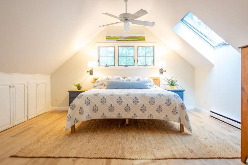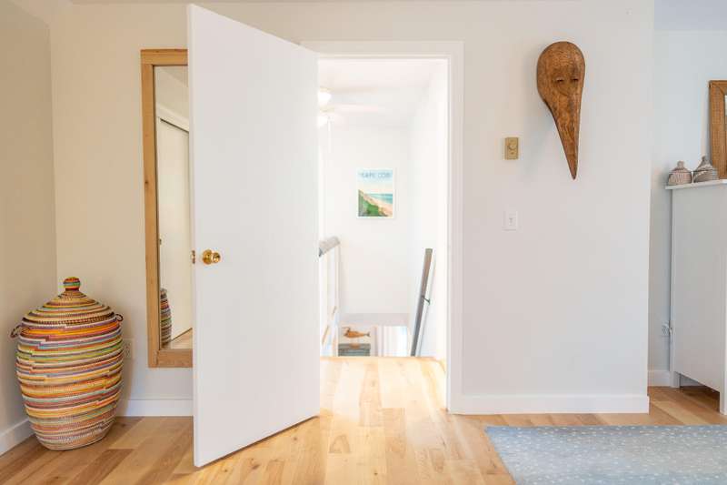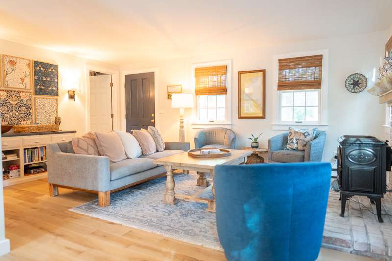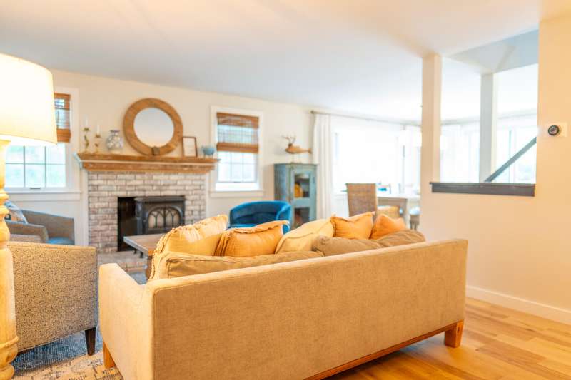 Charming Cape Cod Retreat, under a Mile to Cooks Brook Beach on Cape Cod Bay! Step into this beautifully renovated 3-bedroom, 2-bath home, which seamlessly blends timeless charm with modern comfort. Gorgeous birch floors flow throughout the house, setting a warm and inviting tone. The home features two spacious primary suites--one on each level--offering flexible living options and privacy for guests or multi-generational families. Upstairs, enjoy a cathedral-ceiling bedroom with a cozy sitting area, perfect for relaxing with a book or morning coffee. The updated bathrooms and convenient first-floor laundry add to the home's thoughtful design. Outside, the private yard is a true oasis, complete with a low-maintenance composite deck ideal for entertaining, a large shed, and mature landscaping that enhances the serene setting. The finished basement includes a workshop and walk-up access, providing excellent space for hobbies or additional living. Located in a quiet, sought-after neighbor