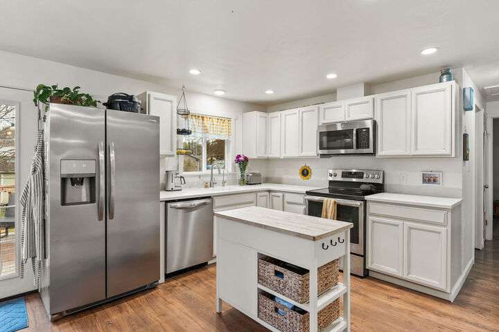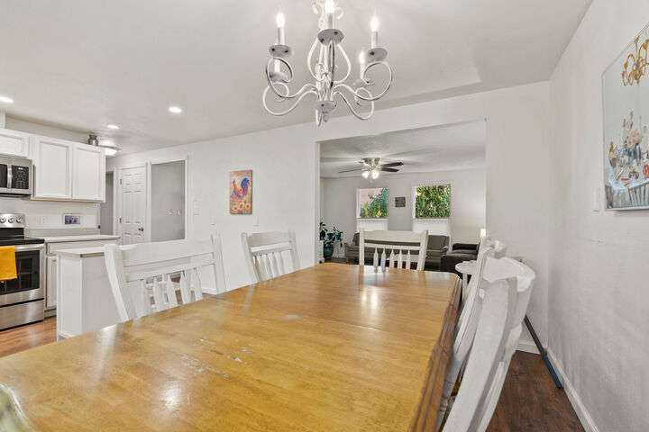 This tastefully updated 4-bedroom, 2-bathroom home sits on a spacious 0.33-acre lot and includes a bonus 1-bedroom, 1-bathroom Accessory Dwelling Unit (ADU) that’s conditionally approved for short-term rentals—ideal for guests, extended family, or extra income. The main home features a well-defined, comfortable floor plan with stylish modern finishes throughout, including updated flooring, fixtures, and a refreshed kitchen. Thoughtful upgrades include underground sprinklers, mature landscaping, and additional parking space for vehicles or trailers. The fully separate ADU boasts its own private entrance, making it a truly independent living space. Nestled in a desirable neighborhood close to parks, schools, golf courses and popular local spots, this versatile property offers space, flexibility, and potential for homeowners, investors, or multigenerational living.