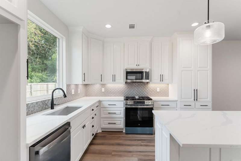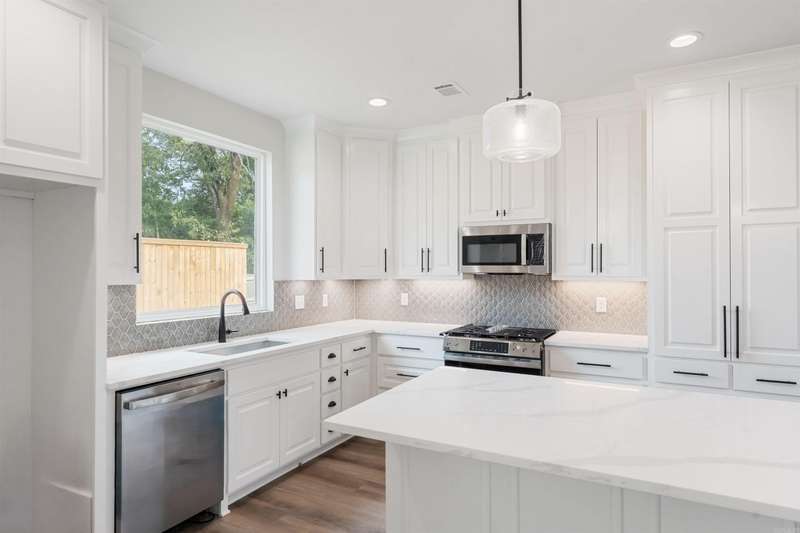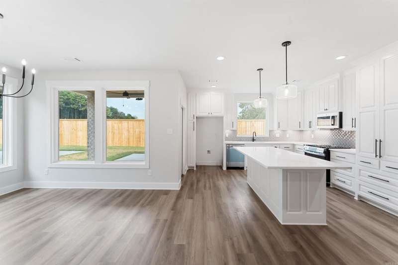 GATED SUBDIVISION!! Five mins from hospital, shopping, schools and interstate. This home has two living areas, great for entertaining. Great room has fireplace, kitchen has custom painted cabinets and gas cooktop and wall oven. Primary bathroom has custom tile shower. LVP flooring throughout! Covered back porch.