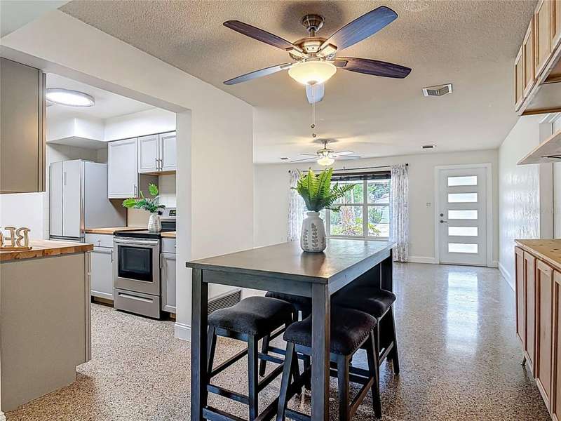 Coastal Living at Its Best - Just Steps from the Soft Sand and Pristine Beaches of Ormond by the Sea! This is your opportunity for an affordable slice of paradise- a charming 2-bed, 2-bath beachside home that perfectly blends comfort, durability, and location. Nestled on a peaceful, no-driving beach, this uncrowded stretch of coastline is where neighbors wave, sunrises are sacred, and salt air is basically free therapy. Enjoy morning strolls, shell hunting, or coffee with the sunrise, the beach short distance from your front door. Inside, you'll find a bright, open layout with terrazzo floors, block construction, and peace of mind in the X flood zone. Major updates include a 2020 roof and A/C in 2020, making this home as solid as it is stylish. The updated kitchen features modern butcher block countertops and a center island-perfect for meal prep and casual entertaining. The living and dining areas flow together, ideal for relaxed coastal living. Step out back to your screened porch and spacious fenced-in yard, surrounded by mature tropical landscaping a private retreat with endless potential for gardening, pets, a future pool, or simply soaking in the sea breeze. Whether you're searching for a full-time residence, vacation getaway, or smart investment, this home checks all the boxes.