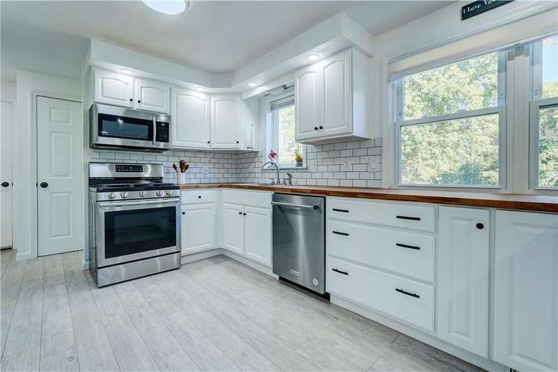 Wow! Completely redone and gorgeous! Situated on a quiet cul-de-sac with a beautiful large, private backyard. backing to woods and a creek.. Modern white kitchen with new butcher block countertops, new back splash ,stainless appliances. New bathrooms. Very open floor plan with a large bright great room with fireplace. Large primary bedroom with walk in closet. Front patio and back deck, above ground pool with new liner. New tear-off roof, brand new water tank, central air conditioning , electric service, doors, patio, generator transfer switch, recessed lighting. Replacement windows. You will love it!