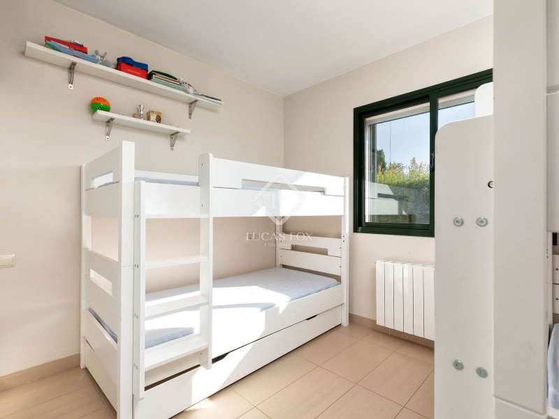 This charming detached house of 156 m² is located in the prestigious Torremirona golf resort, in Navata, a privileged setting in the Alt Empordà region that combines nature, tranquility, and high-level amenities , just minutes from Figueres and the beaches of the Costa Brava. The property sits on a private plot of just over 500 m² and is part of a residential complex of just 11 homes that share a large communal area with a pool and garden, perfect for enjoying the Mediterranean climate. Distributed entirely on a single floor, the house offers a practical and bright layout . The day area features a spacious living-dining room with large windows, which connects to the terrace and private garden . The semi-open kitchen is functionally integrated into the space, ideal for both everyday living and entertaining. The night area has four double bedrooms, one of them with a private bathroom, and two additional bathrooms that serve the rest of the rooms. Exterior, the garden offers a pleasant bedroom area and a small wooden house that can be used as a storage room or as a place to store bicycles and sports equipment. The house is equipped with heating and air conditioning, ensuring maximum comfort throughout the year. In short, a comfortable, bright, and charming property located in one of the most renowned golf resorts in the Empordà, ideal both as a primary residence and as a second home for those seeking tranquility, nature, and quality of life.