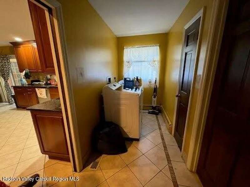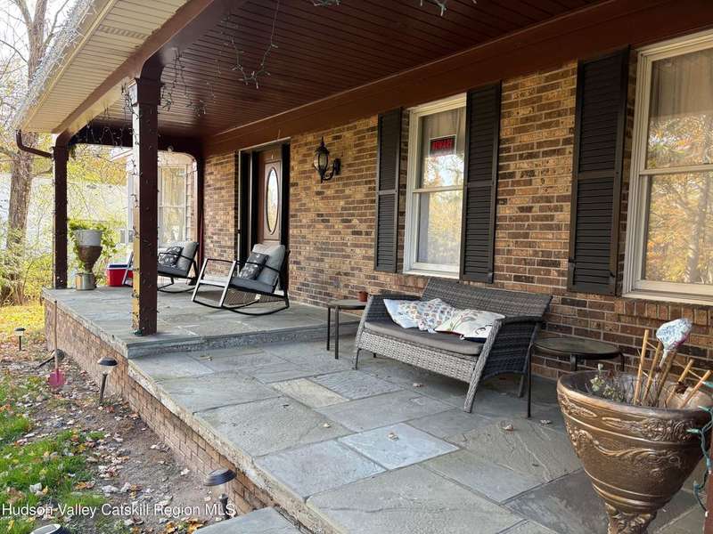 This Spacious Colonial in the sought after Hillside Acres neighborhood is set on a nicely landscaped half-acre corner lot. This home has a great floorplan and features a large living room with sliders to a private deck, a formal dining room, and a custom kitchen with granite countertops, tile backsplash, and double ovens. Enjoy year-round comfort in the bright four-season glass room and cozy evenings by the brick wood-burning fireplace in the family room. The first floor also offers a home office and a convenient laundry room with access to a 2-car garage. Upstairs includes a primary suite with a walk in closet and large bathroom along with 3 other good-sized bedrooms and a full bath in the hall. Additional highlights include a large bluestone front porch, above ground pool, full basement, and solar panels for energy efficiency. Recent updates include a new septic field and new roof under the solar panels. Located in a quiet neighborhood of well-kept homes just minutes from the Uptown Kingston Stockade Area with shopping, dining, and the exit to the NYS Thruway. Just 2 hours out of NYC.