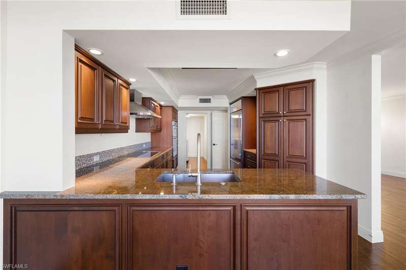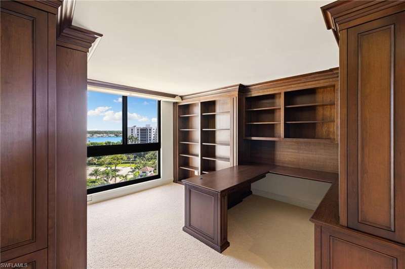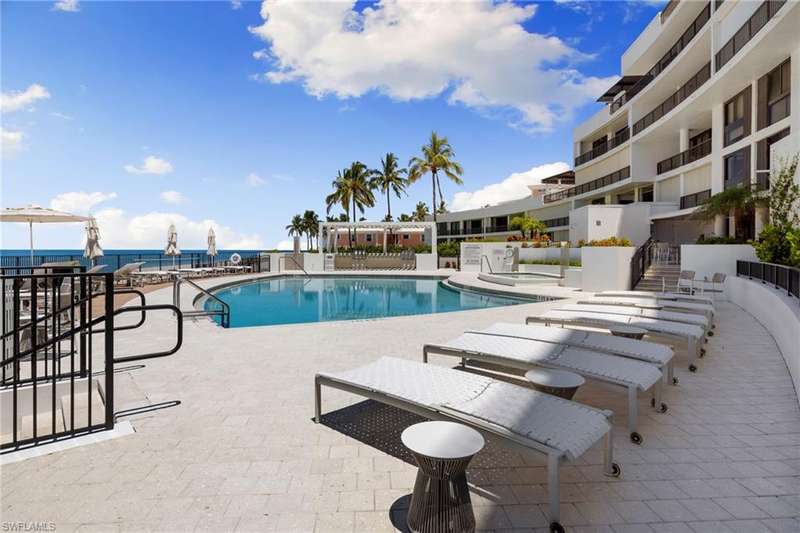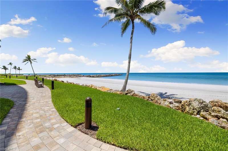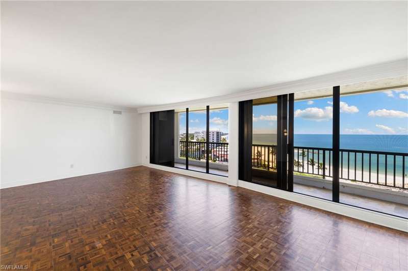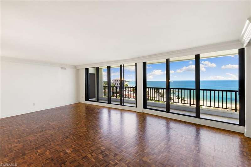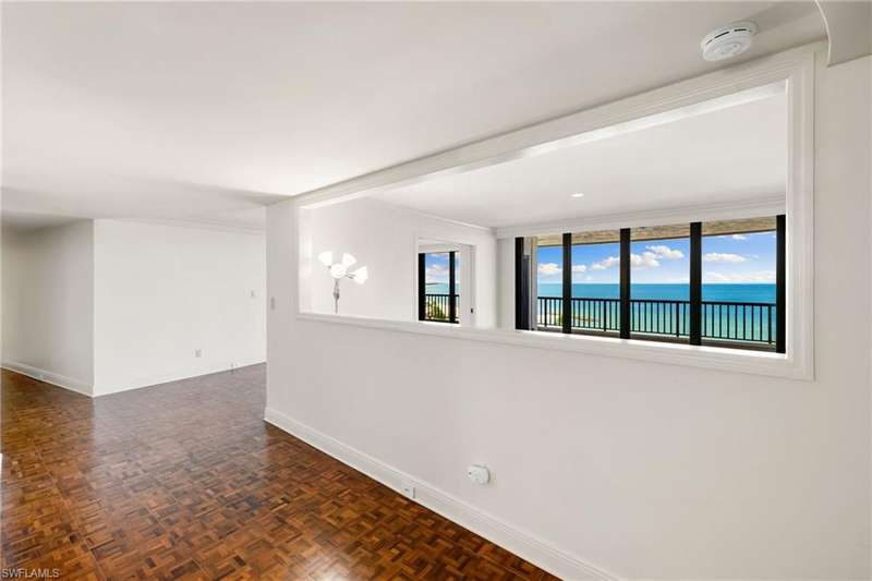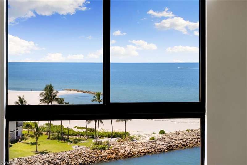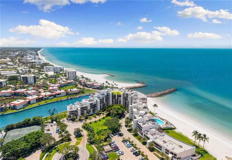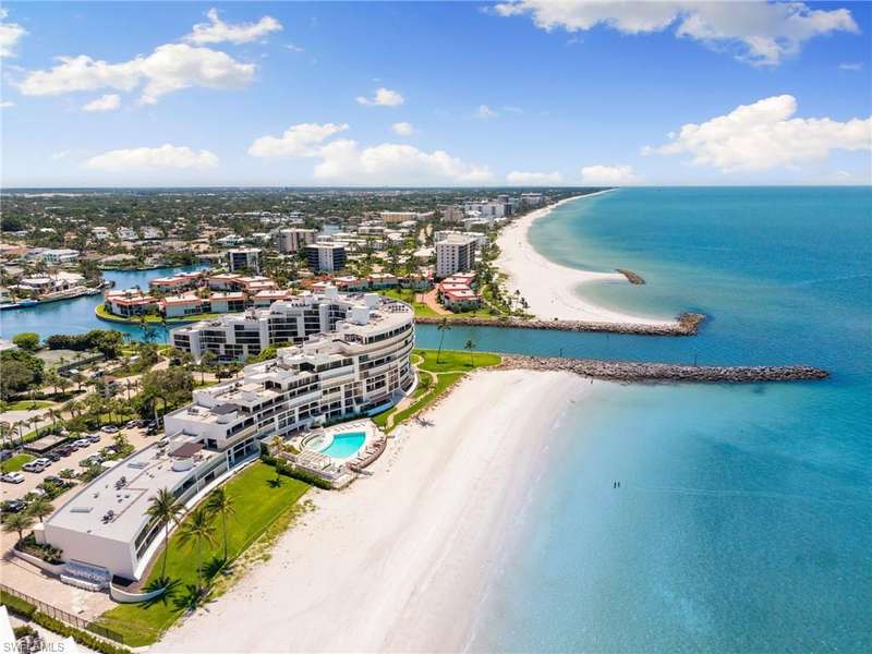 How s that lead off picture for a spot to have your morning coffee or tea to start your day! VIEWS! Rare, sweeping, direct and full southern coastline views from all living areas and master suite, massive direct unobstructed Gulf views, long City views up Gulfshore Boulevard, direct views of Doctor s Pass plus views to Moorings Bay from guest bedrooms and den. This residence is a beach-to-bay design so you have southern, western, eastern and northern views and exposures. SIZE! Nearly 3,000 square feet of air-conditioned living space (was originally a 4 bedroom and can very easily be that again). LOCATION! At the end of the cul-de-sac with gated entry situated on nearly 10 acres of lushly manicured grounds with 2 pools, one renovated clubhouse area, and in recent years newly constructed grand clubhouse with fantastic workout facilities, boat docks and kayak storage / launch (subject to availability) magnificent. Impact glass throughout for all windows and sliders plus extra storm prot